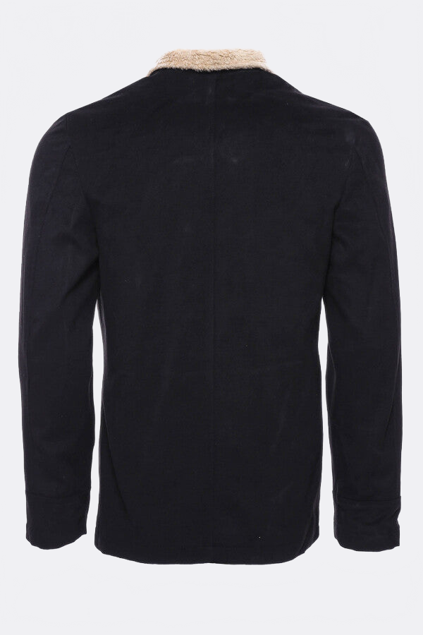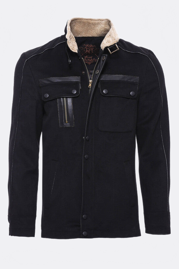 معطف رجالي أسود بياقة فرو و4 جيوب - ويسي