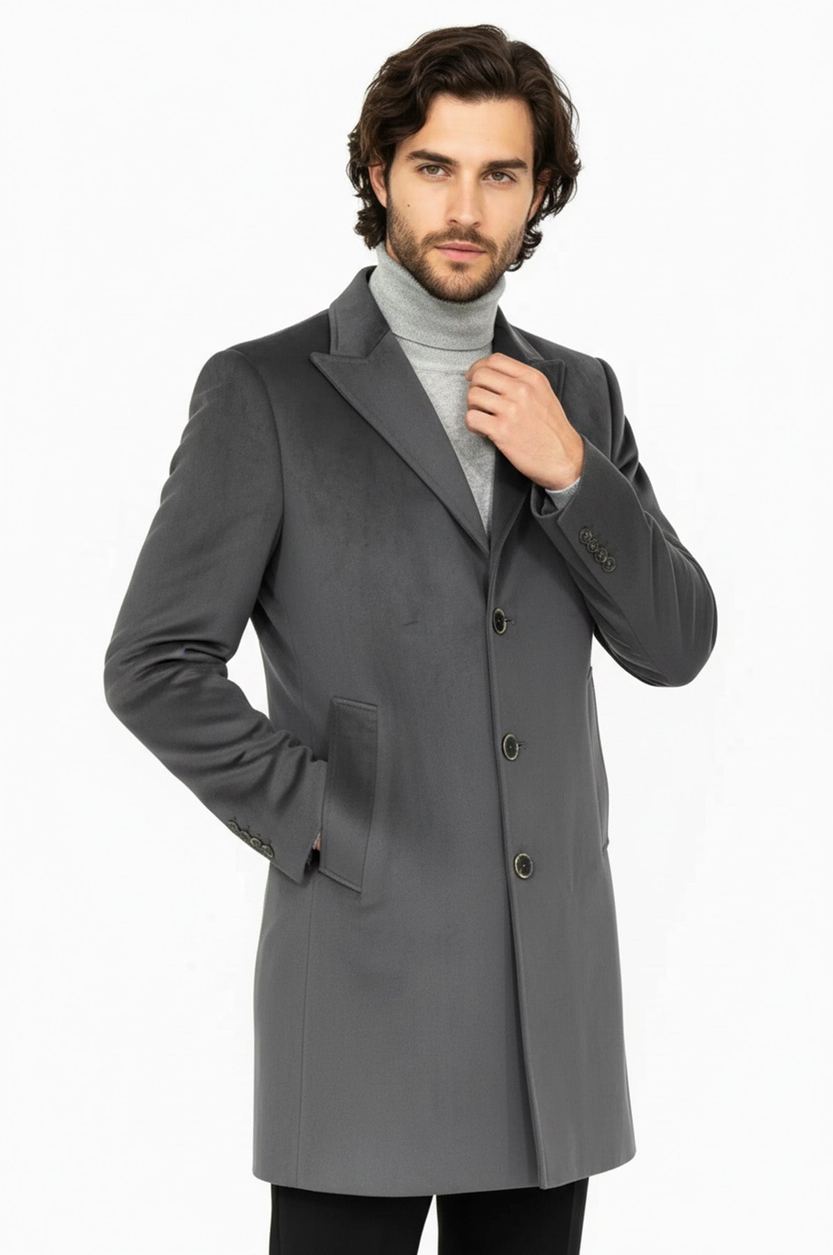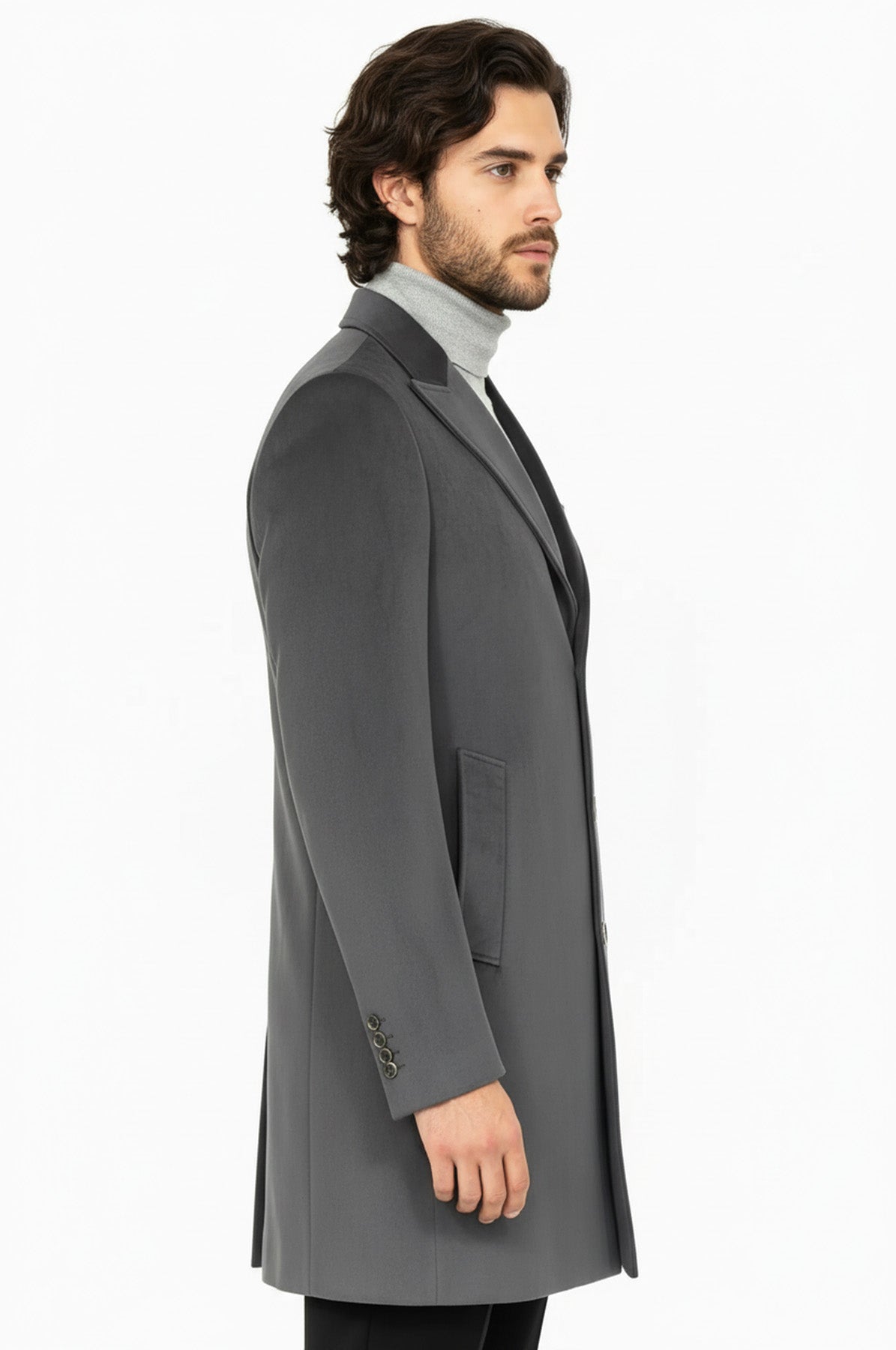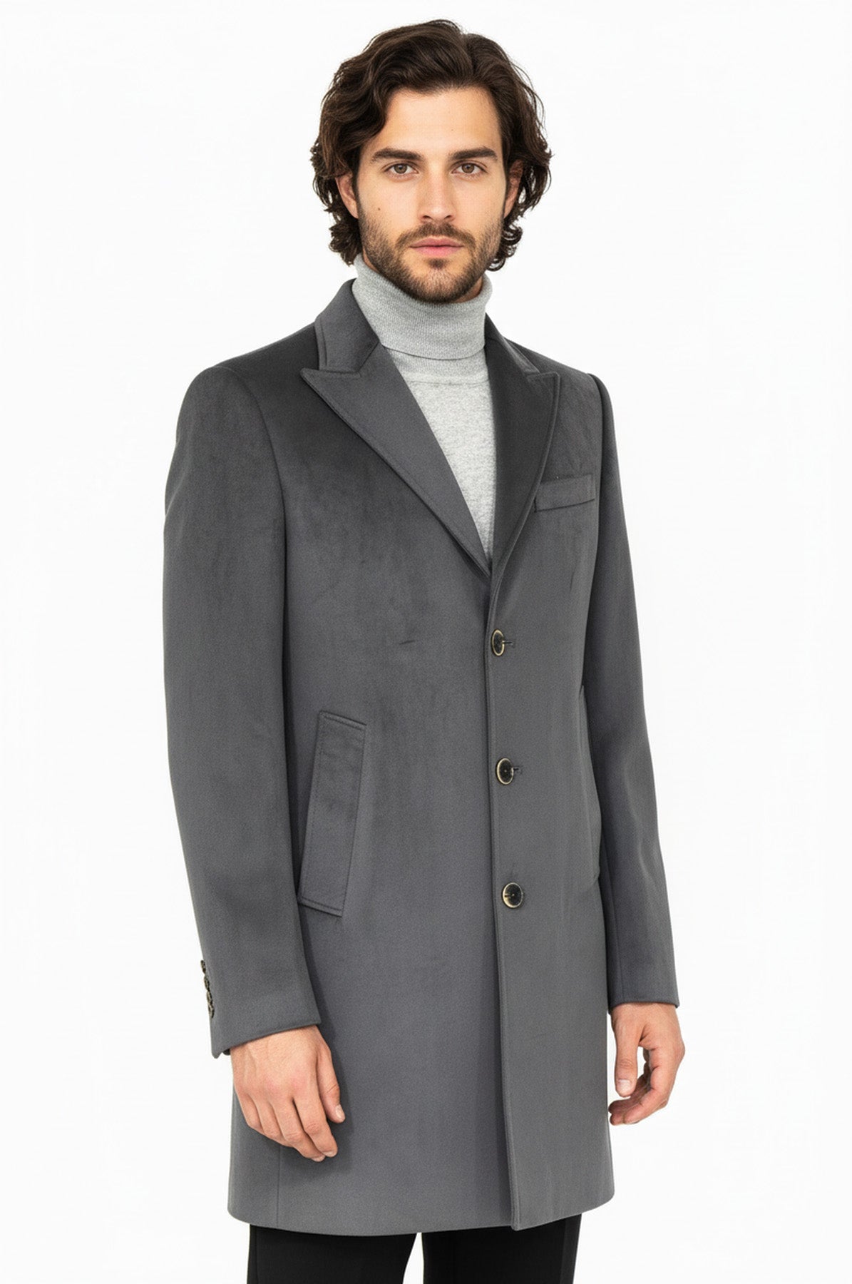 معطف طويل من جلد الغزال باللون الرمادي للرجال - ويسي