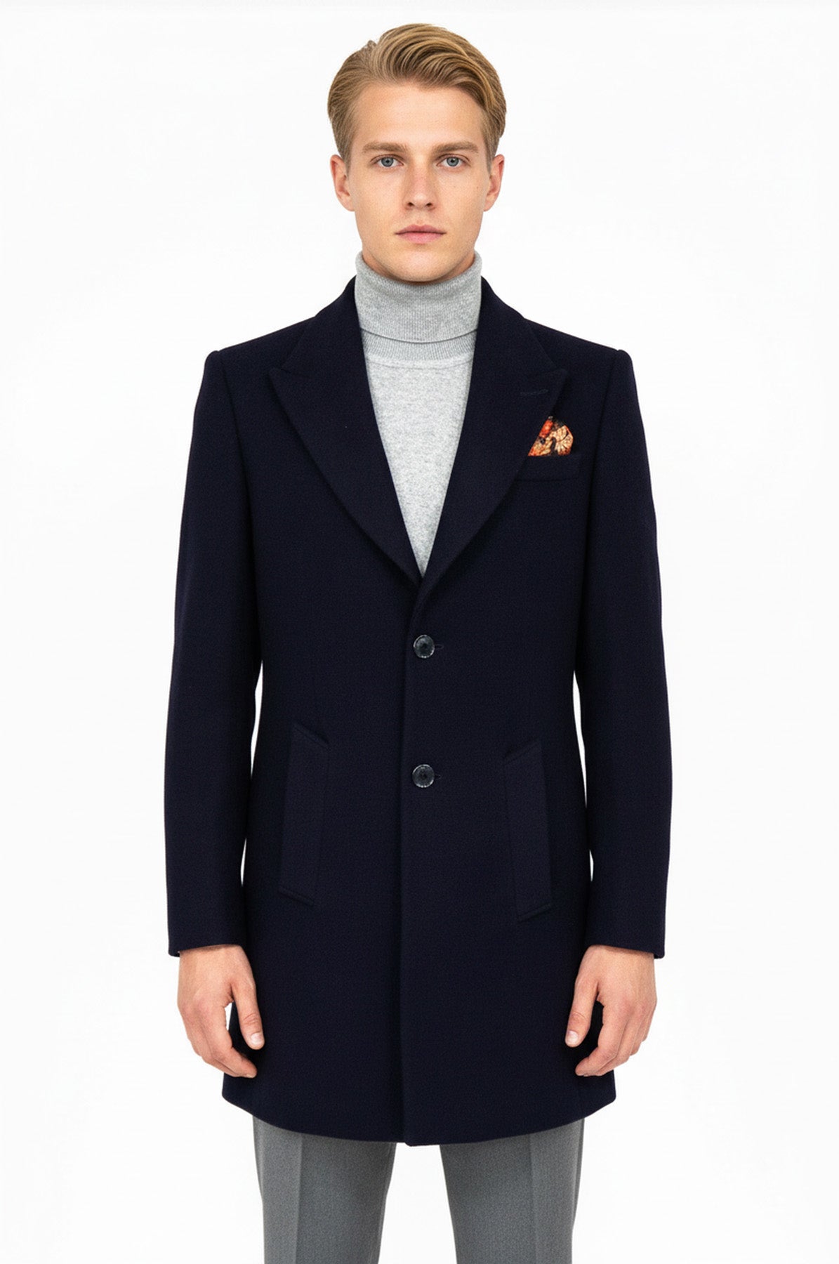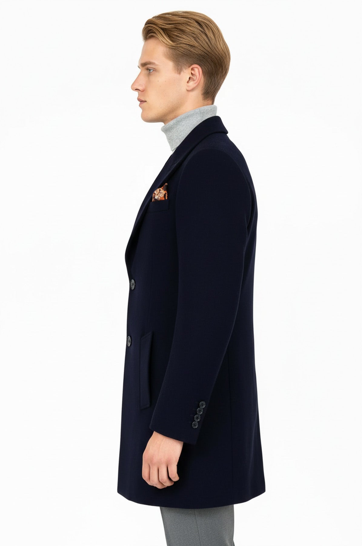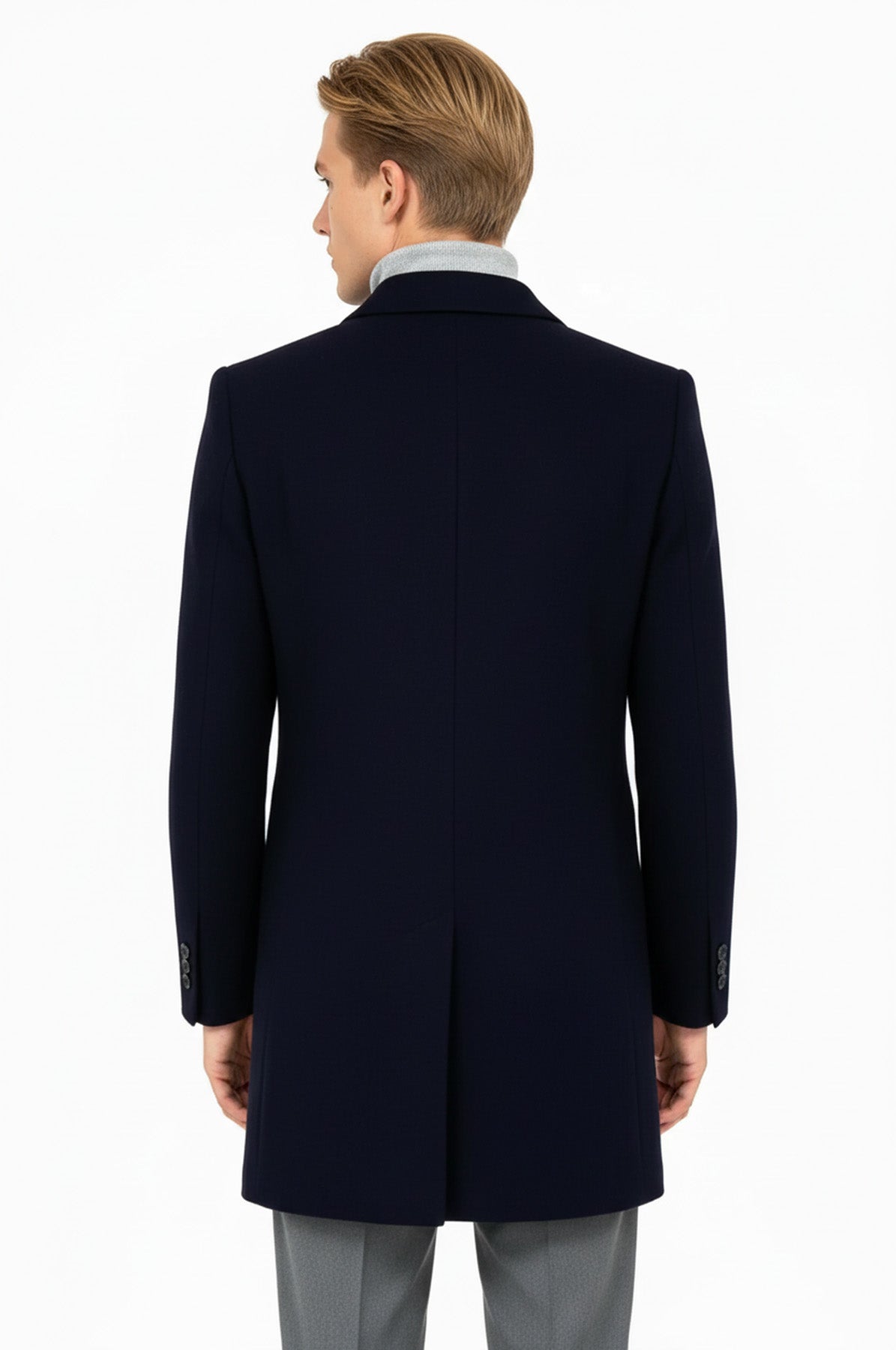 معطف رجالي من الصوف ذو طية صدر السترة باللون الأزرق الداكن - ويسي