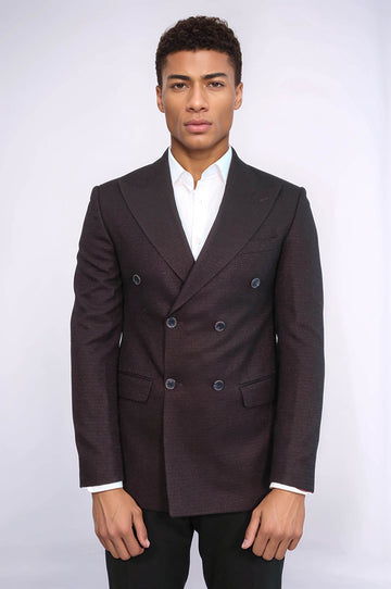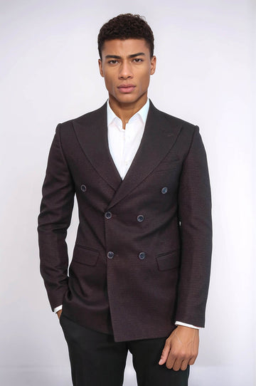 بليزر رجالي مزدوج الصدر منقوش بنقشة Houndstooth باللون العنابي - Wessi
