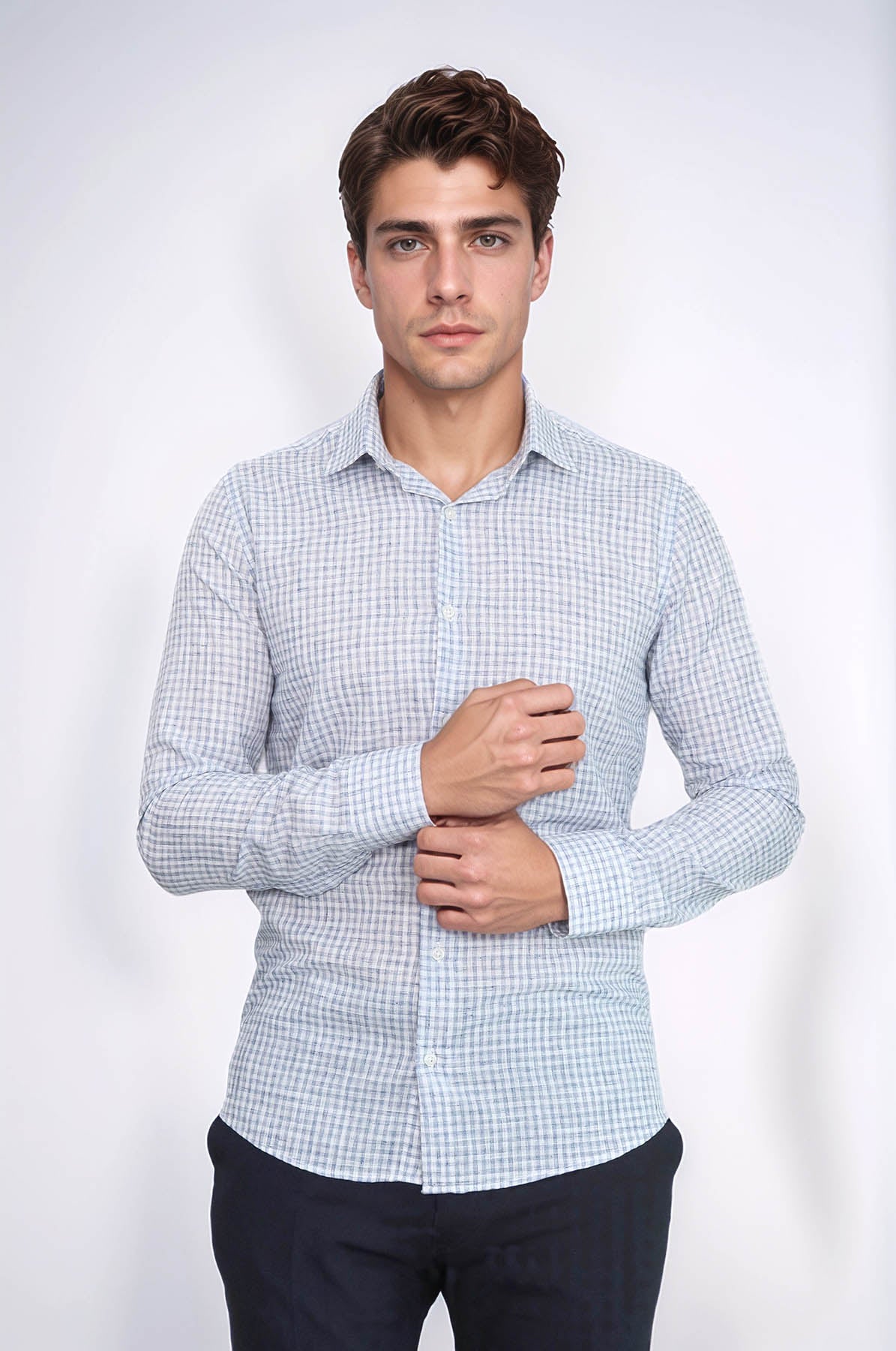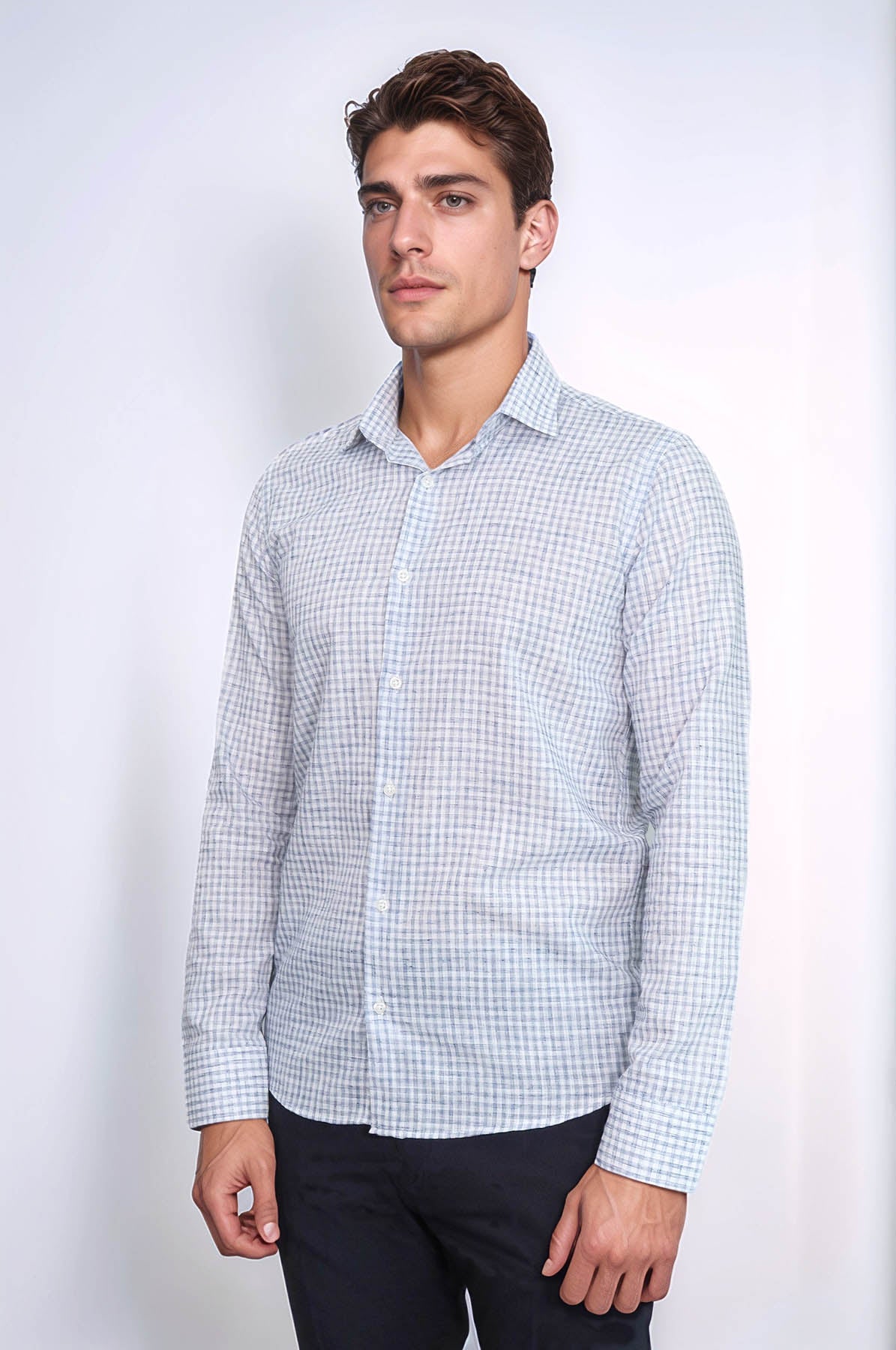 قميص منقوش بقصة ضيقة للرجال باللون الأزرق الداكن - ويسي