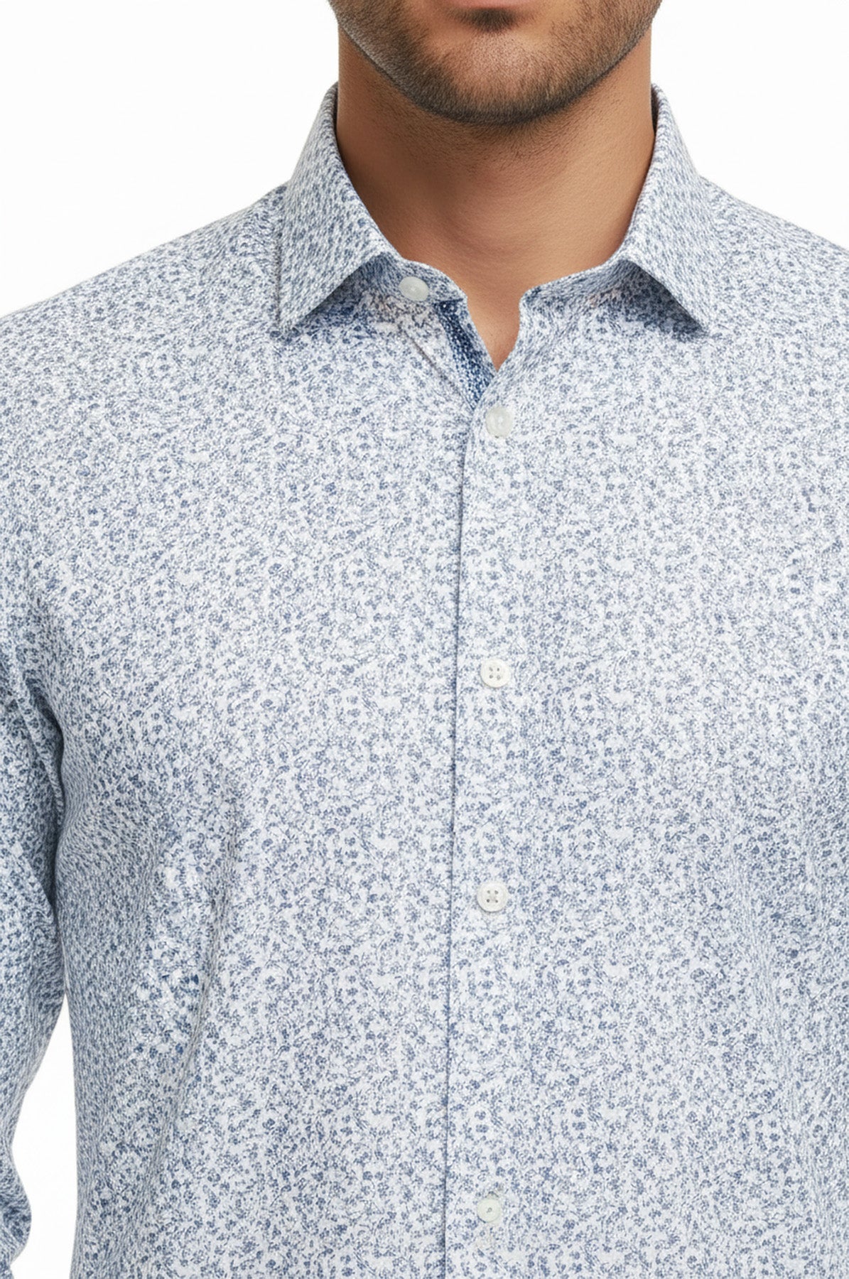 قميص رجالي أبيض منقوش عليه زهور باللون الأزرق - ويسي
