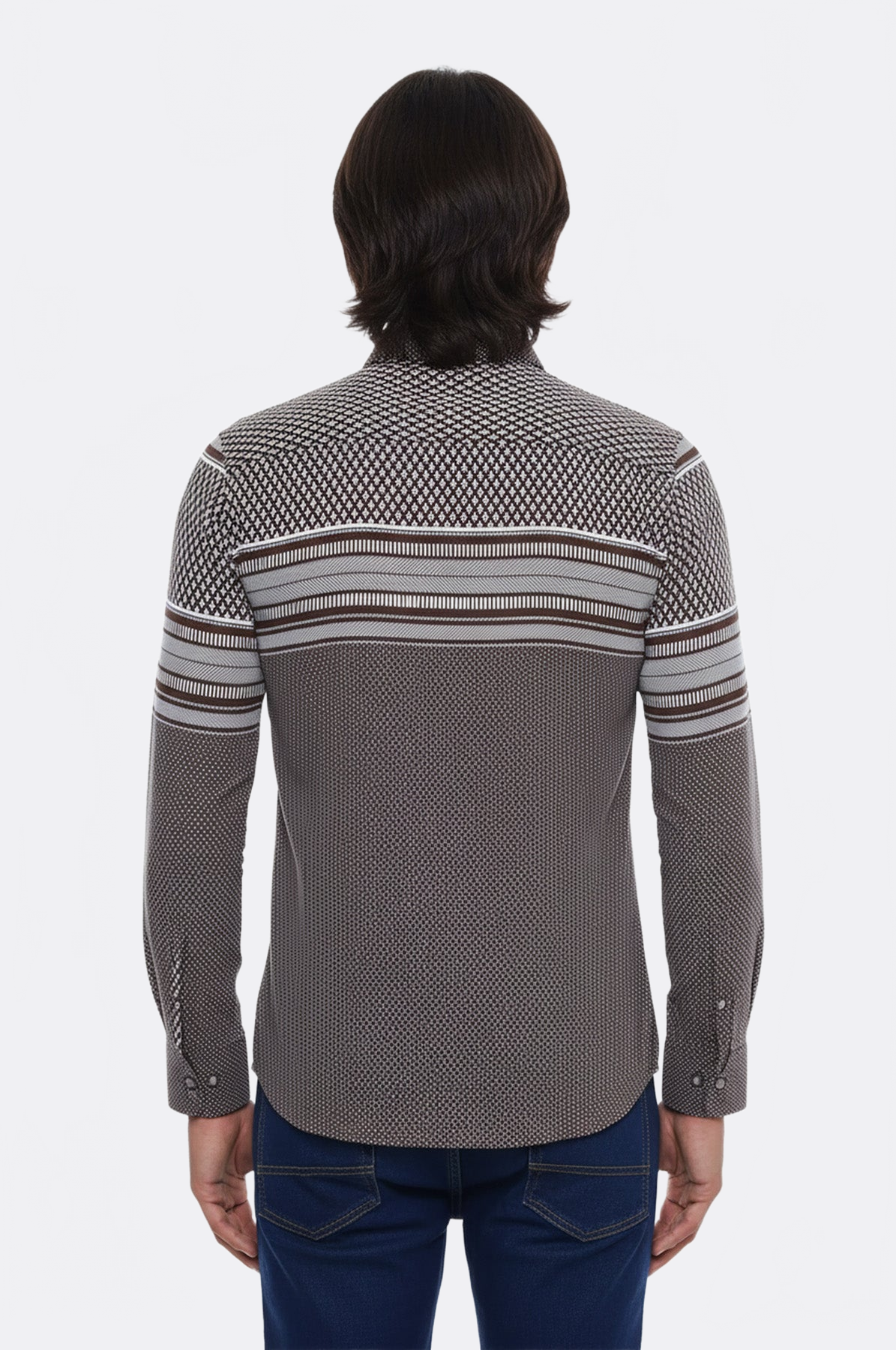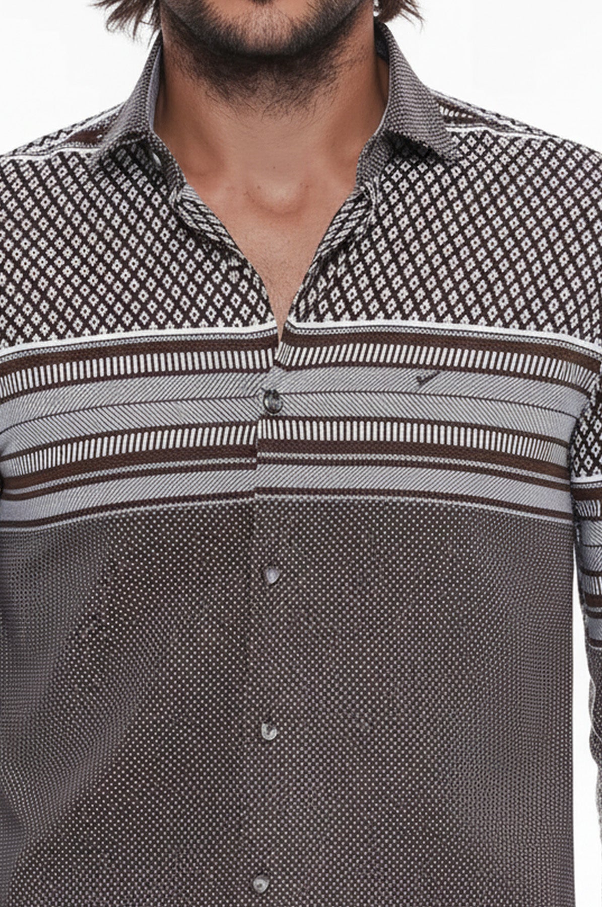 هذا القميص متعدد الاستخدامات ذو اللون البني الماسي من Wessi يمثل إضافة أنيقة لأي خزانة ملابس. يضيف النمط الماسي المعقد لمسة من الرقي ويضمن النسيج عالي الجودة الراحة والمتانة. ارتقي بمظهرك مع هذا القميص المصنوع بخبرة.