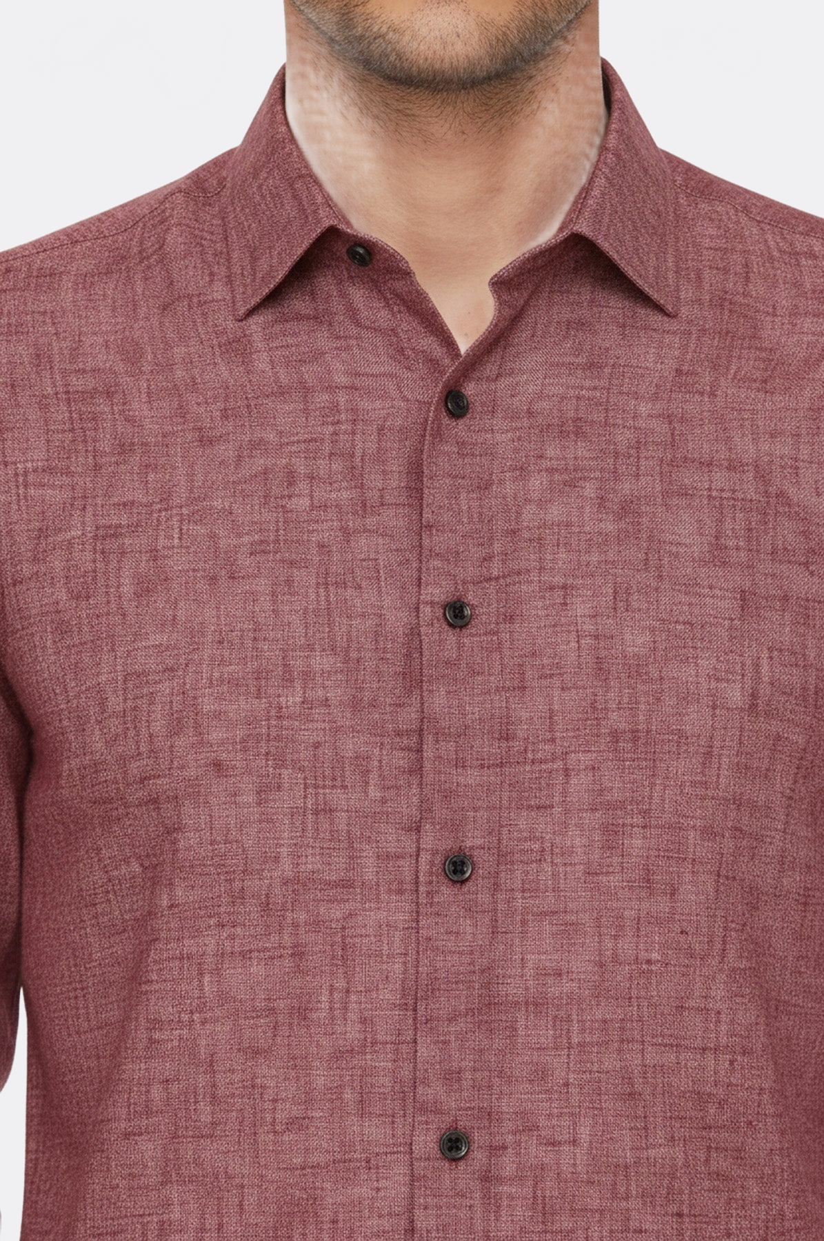 قميص رجالي عنابي منقوش بقصة ضيقة - ويسي