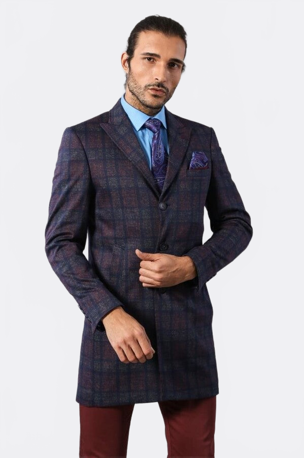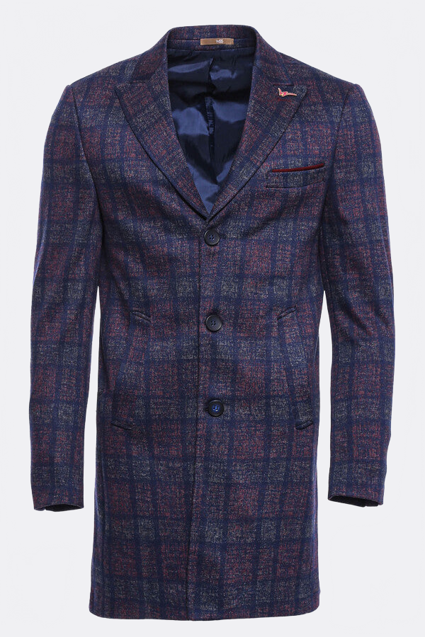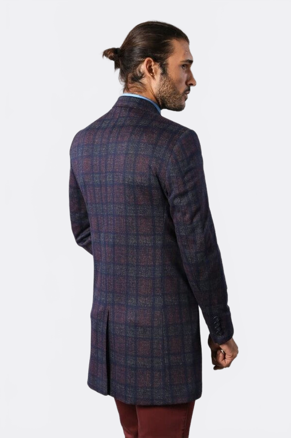 معطف رجالي بورجوندي منقوش مزدوج الصدر - ويسي