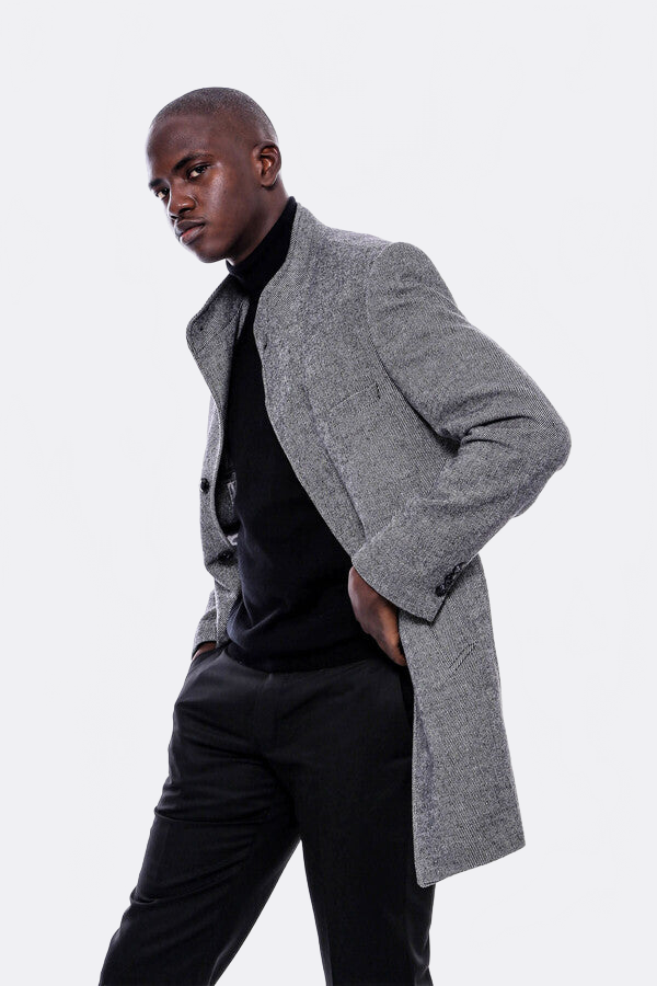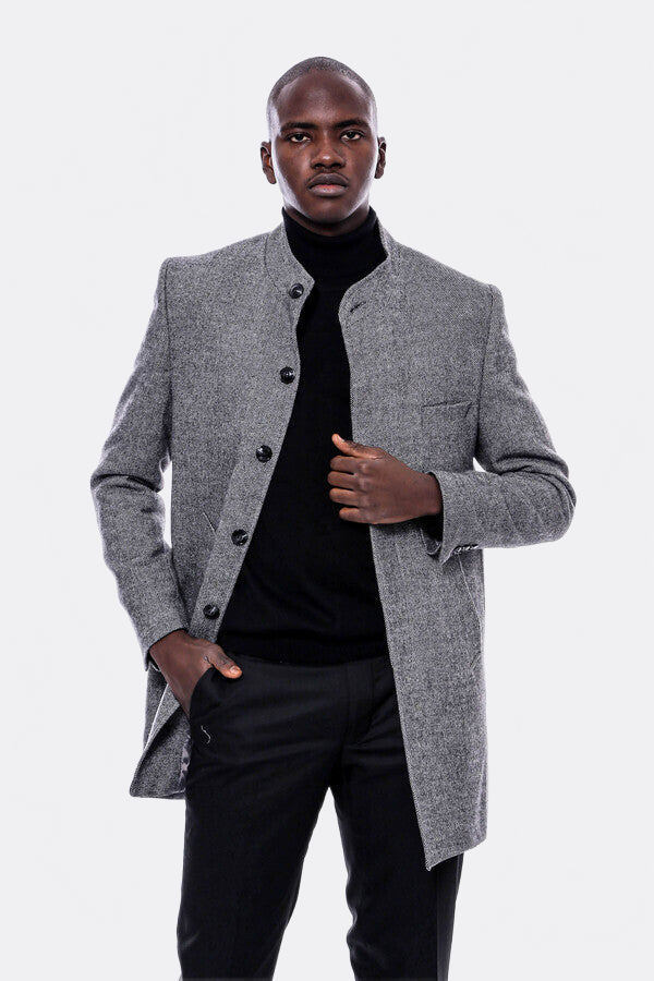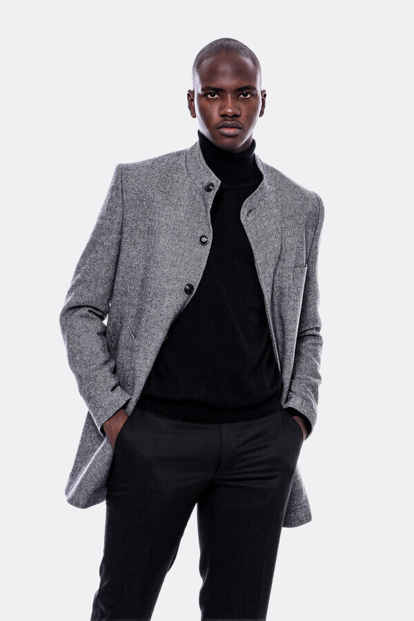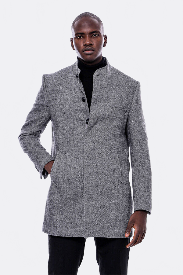 معطف قصير رمادي بياقة الماندرين - ويسي