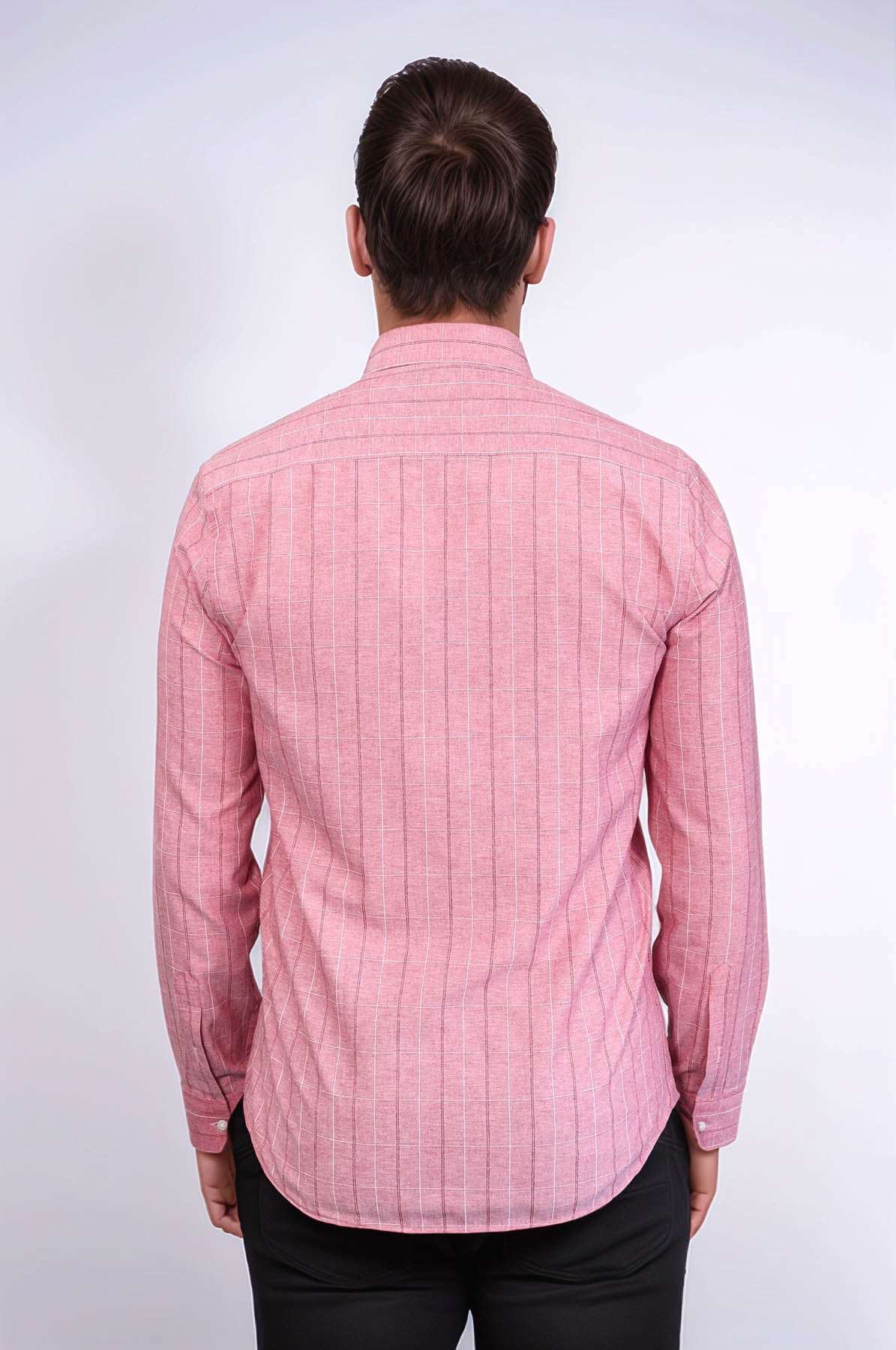 يبدو هذا القميص العنابي طويل الأكمام المصنوع من نسيج القطن أنيقًا للغاية. أنماط منقوشة مكونة من خطوط ملونة باللونين الأحمر والأبيض على اللون العنابي، يتمتع هذا القميص بإطلالة تتكون من موضة النقوش المنقوشة في السنوات الماضية ومزيج العصر الحديث. ليس لديها جيب. لا يوجد زر على الياقة. هذا يجعل القميص قميصًا رياضيًا أكثر. إنه منتج يمكن استخدامه بسهولة شديدة بشكل يومي. يتميز نموذج القميص الرجالي هذا بقصة ضيقة.