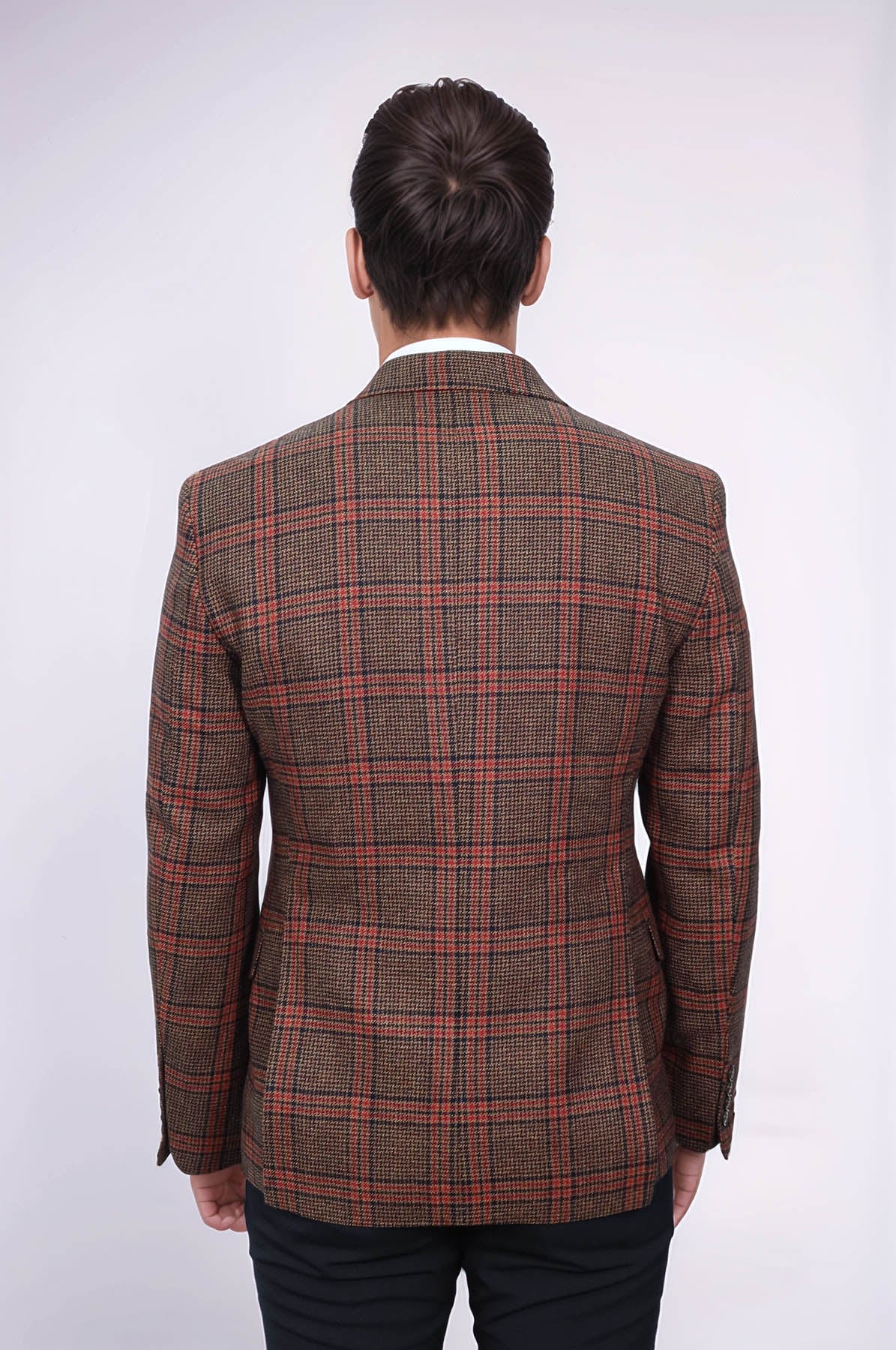 A: The brown base combined with bold red check patterns creates a modern yet timeless style, making it stand out in both formal and casual settings.