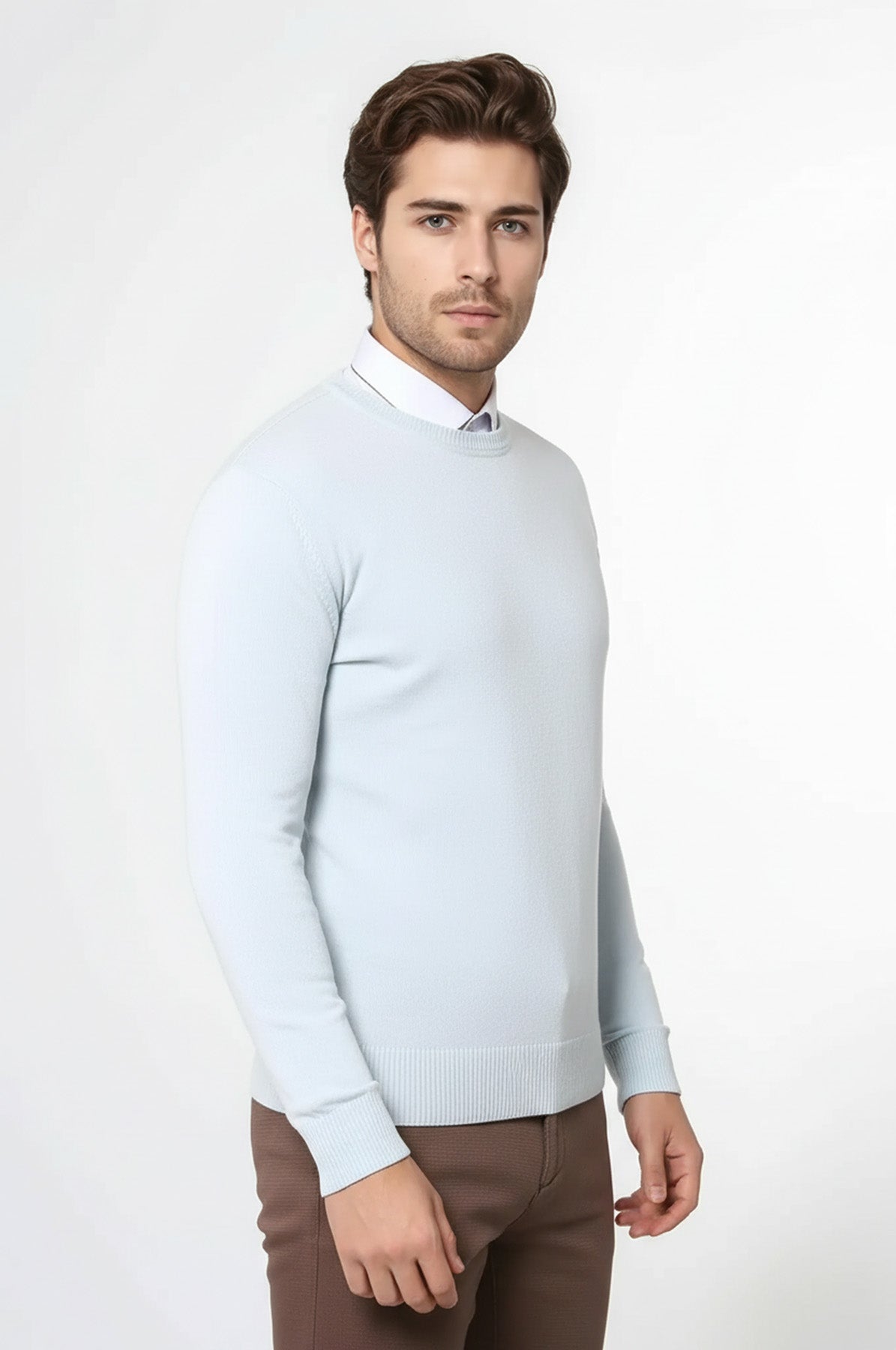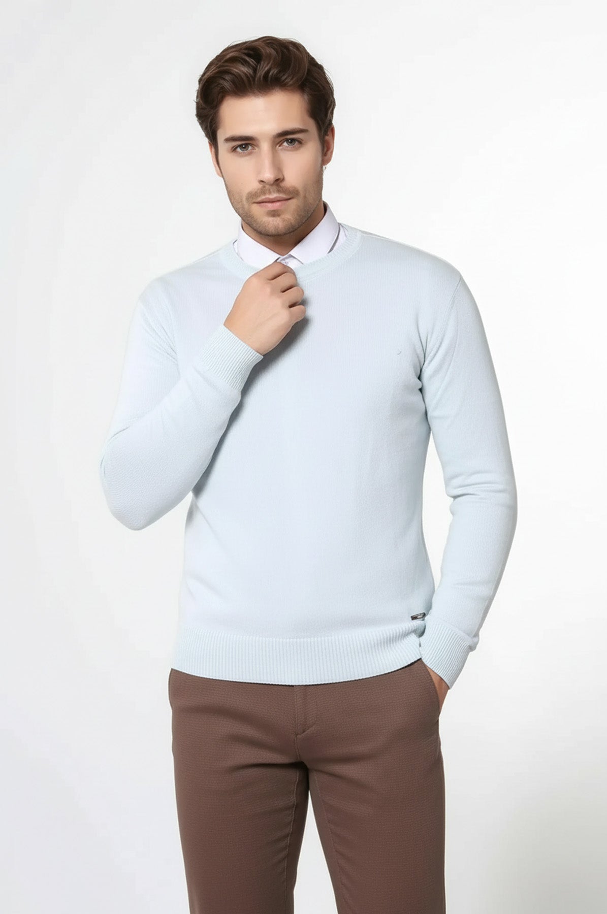 سترة ذات ياقة دائرية باللون الأزرق الجليدي - ويسي
