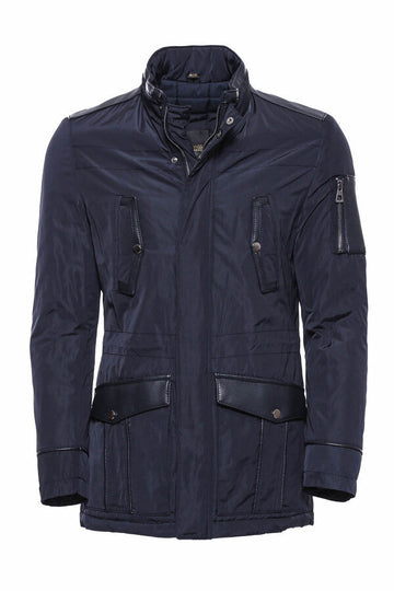 يتكون هذا المعطف الرجالي من مزيج من البوليستر والفيسكوز، وهو باللون الأزرق الداكن. لديها أربعة جيوب. إنه يوفر مظهرًا أنيقًا ورائعًا مع نسيج جلدي في الأكمام والجيوب. يمكنك إنشاء مظهر مختلف لجسمك من خلال تفاصيل الخصر المربوطة داخليًا. وهو يختلف عن المعاطف الأخرى بياقة شديدة الانحدار. تم تصميم نموذج الياقة المستقيمة لتقليل فقدان الحرارة وللحصول على مظهر أنيق. يمكنك استخدامه بسهولة في أي بيئة مع هذا المعطف.