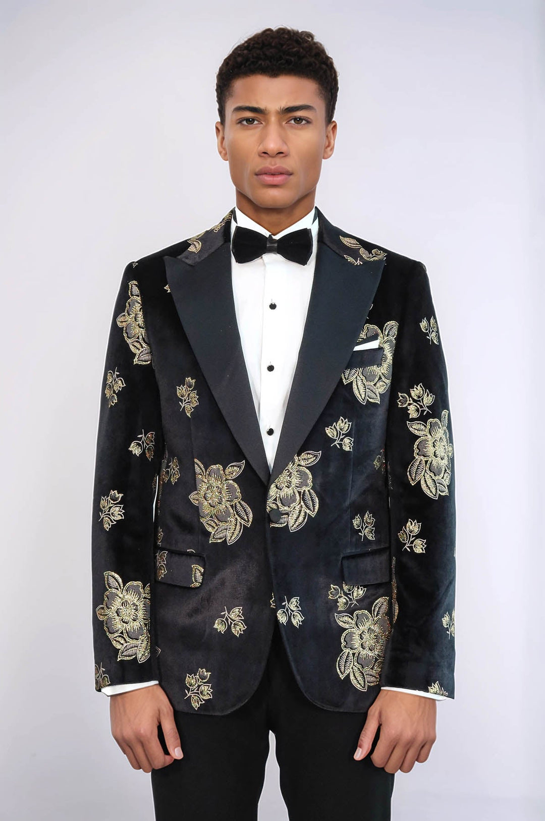 This black and gold rose-patterned men's jacket with a pointed collar offers a sophisticated and stylish look. Its slim fit cut hugs the body perfectly, providing a modern appeal. This jacket is suitable for parties, weddings, and special events. The black color of the jacket effortlessly complements any outfit, ensuring you maintain your elegance at all times. The gold rose pattern adds a touch of sophistication and makes it stand out from the ordinary. You can style this jacket in various ways to complete your look. For a classic and elegant appearance, pair it with a white shirt and black trousers. Adding a colorful tie or bowtie can create a more vibrant style. Alternatively, you can combine this jacket with jeans and a basic t-shirt for a more casual look. This way, you achieve a comfortable yet stylish appearance. With its high-quality materials and carefully crafted details, this jacket maintains its durability while providing you with comfort. A must-have for fashion-forward men, this jacket deserves a place in your wardrobe. If you want to enhance your style and make a statement at a special event, the black and gold rose-patterned slim fit men's jacket is the perfect choice! With this jacket that elevates your elegance, you can capture everyone's attention.
