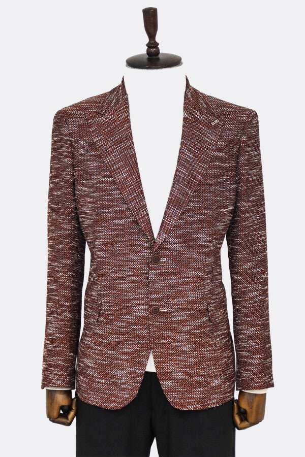Slim Fit Patterned Sport Brown Men Blazer - Wessi
