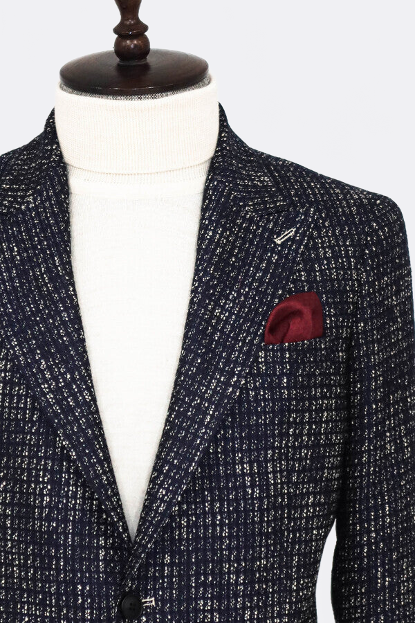 Slim Fit Patterned Sport Navy Blue Men Blazer - Wessi