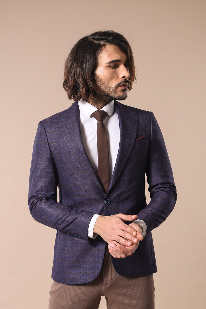 Details: Two button, peak lapel,Plaid, double breasted