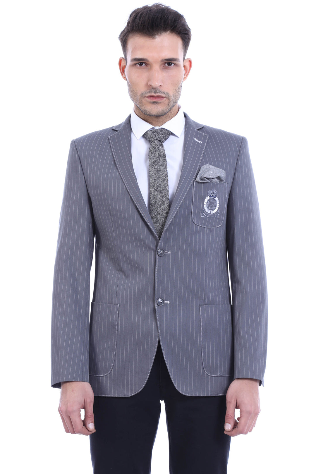 This striped single slit crested bag pocket grey jacket by Wessi offers a professional and stylish option for any wardrobe. The unique design features a single slit and crested bag pocket, providing both functionality and modern style. Crafted with high-quality materials, this jacket is perfect for any occasion.