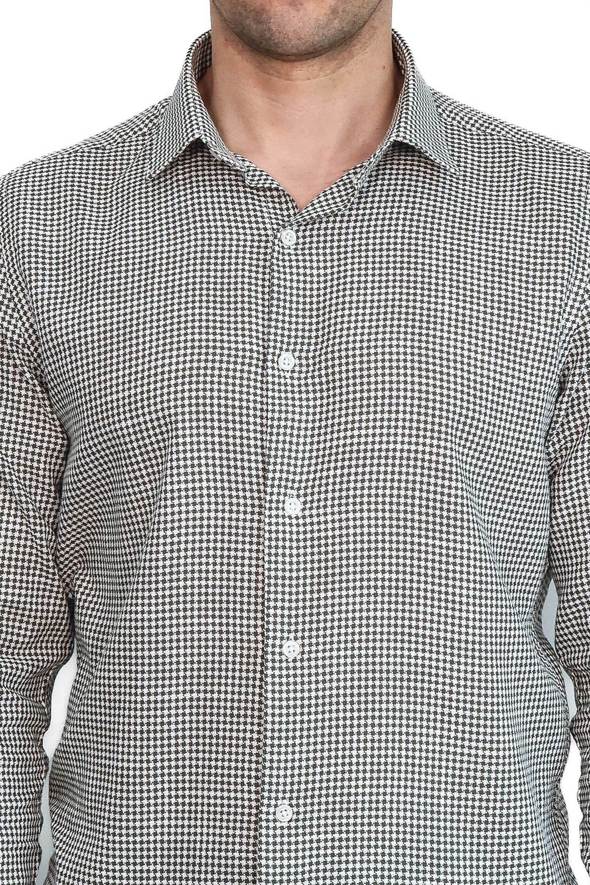 Upgrade your wardrobe with the stylish Houndstooth Pattern Green Men Shirt by Wessi. Made from quality materials, this shirt features a classic houndstooth pattern that adds a touch of sophistication to any outfit. Perfect for both formal and casual occasions, it is a must-have for any fashion-forward man.