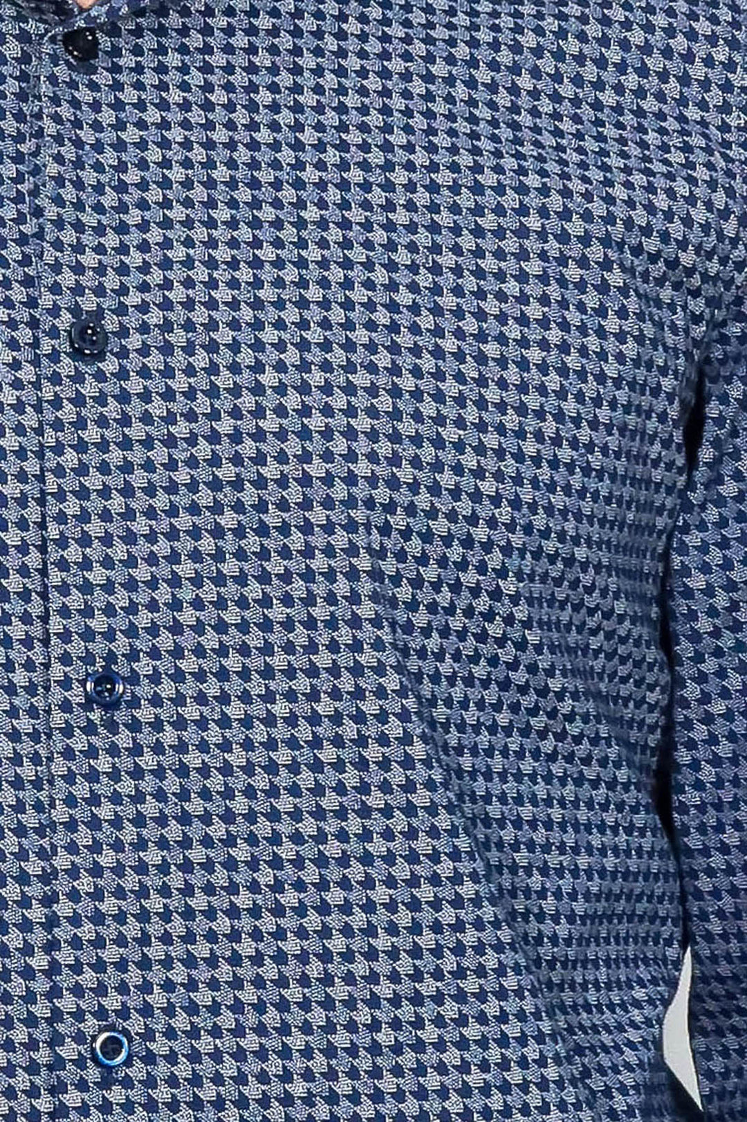 Houndstooth Pattern Slim Fit Navy Blue Men Shirt - Wessi