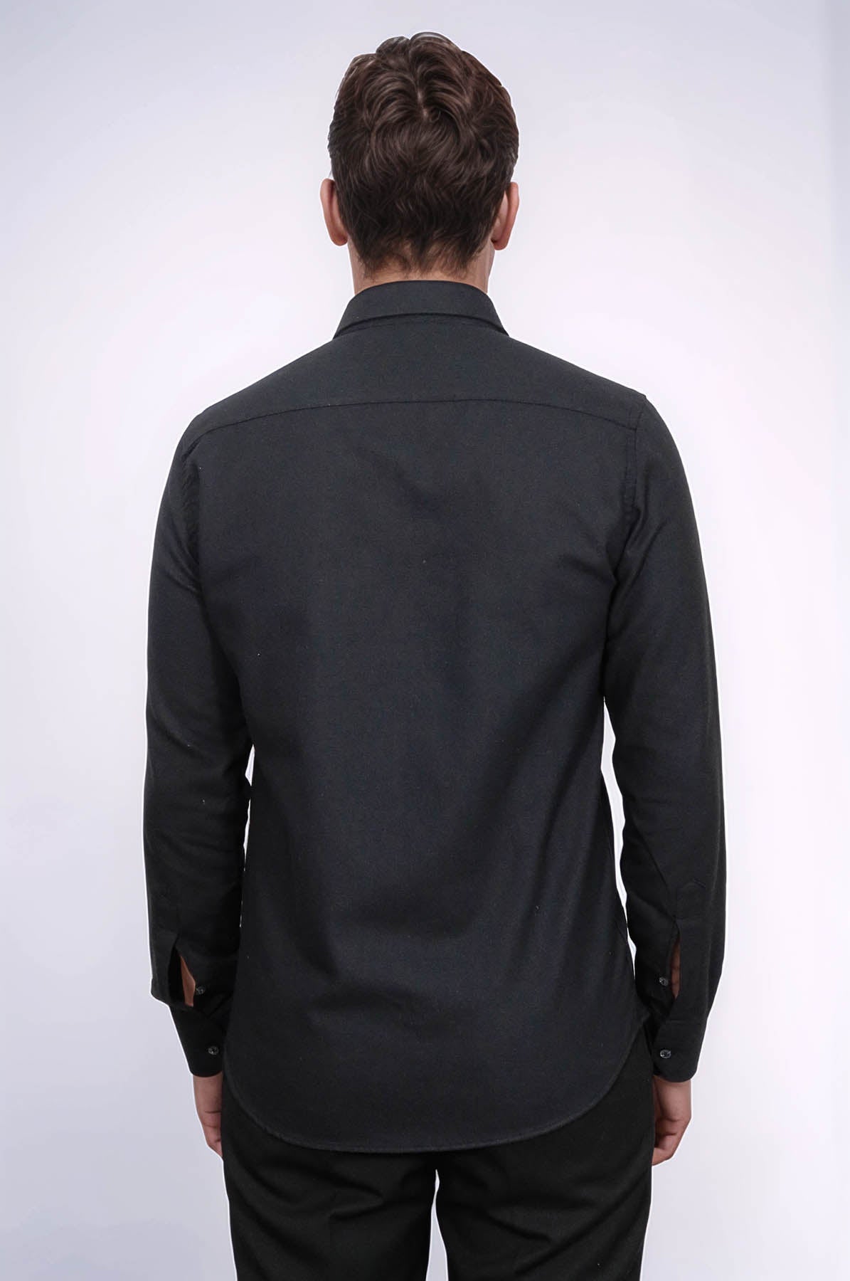 Plain Slim Fit Black Men Lumberjack Shirt - Wessi