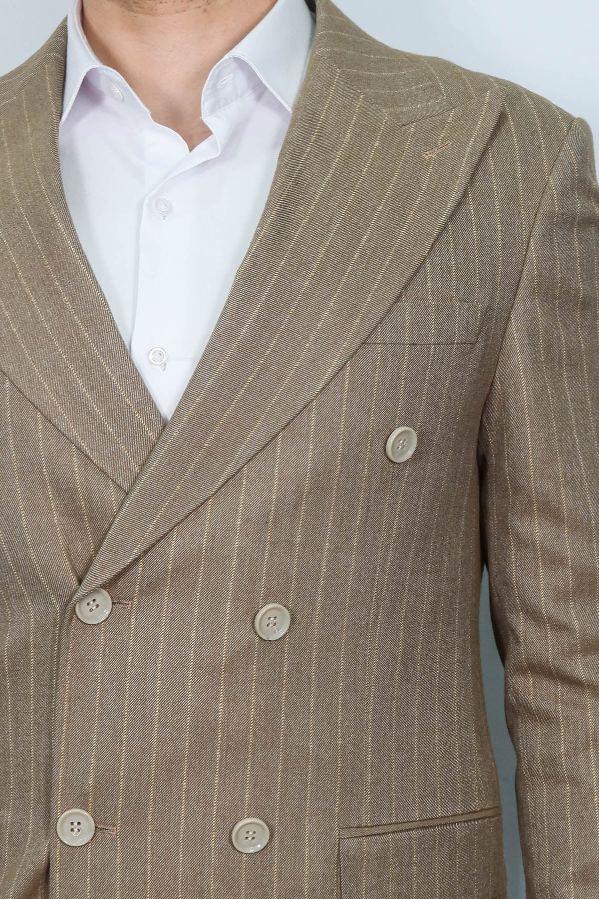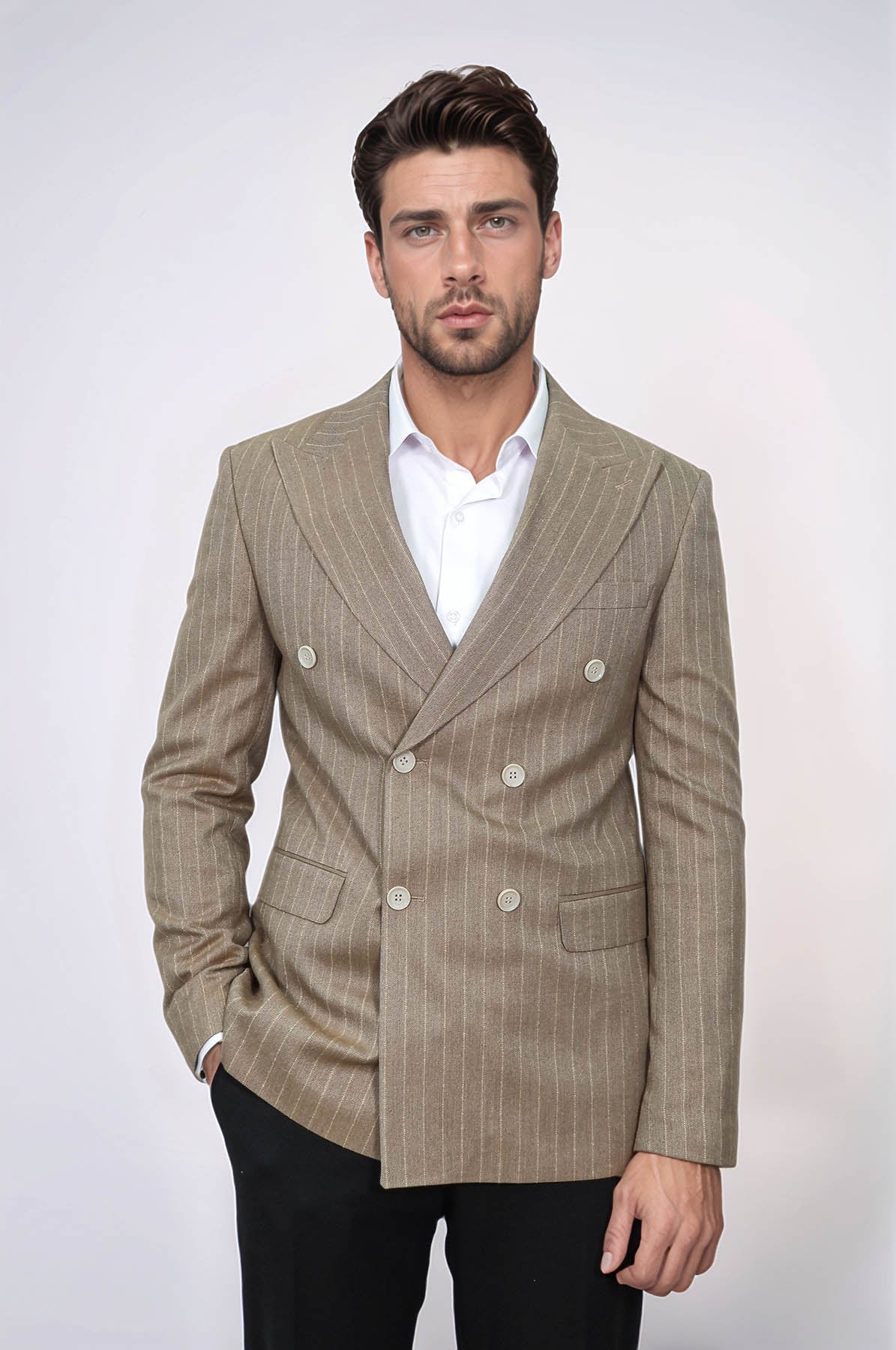 Striped Double Breasted Light Brown Men Blazer - Wessi