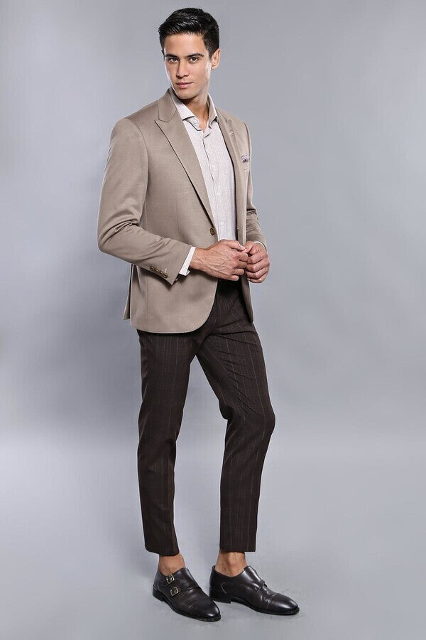 Beige, one of the most comfortable and soft colors for spring summer concepts, can create a stylish concept for casual styles with its light color tones. You can get a more corporate atmosphere with dark tones and use it easily in your business combinations. This combed beige slim fit jacket model creates a style that can be used in hot seasons with its light structure. In classic styles, more beige-like color tones such as gray can be preferred in this model shirt harmony. This combination can be successfully completed with shoes in dark brown tones. You can instantly visit our site, which includes combinations for every style and budget. You can find the combination pieces you are looking for for all your combinations on our site and you can shop at the cheapest price ranges.