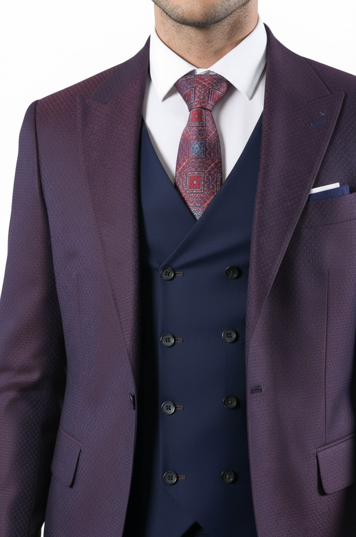 Burgundy Jacket Combined Navy Blue Suit - Wessi
