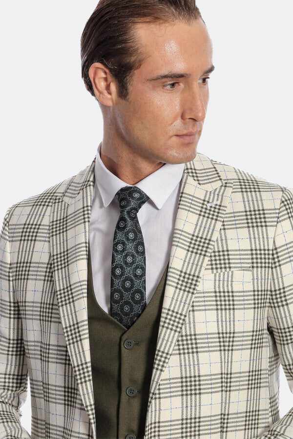 Checked Slim Fit Green Men Suit - Wessi