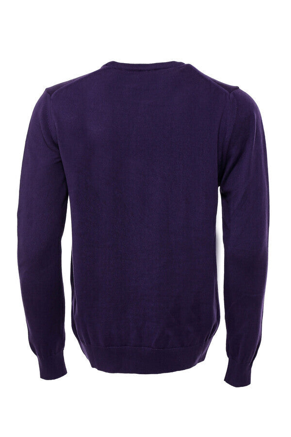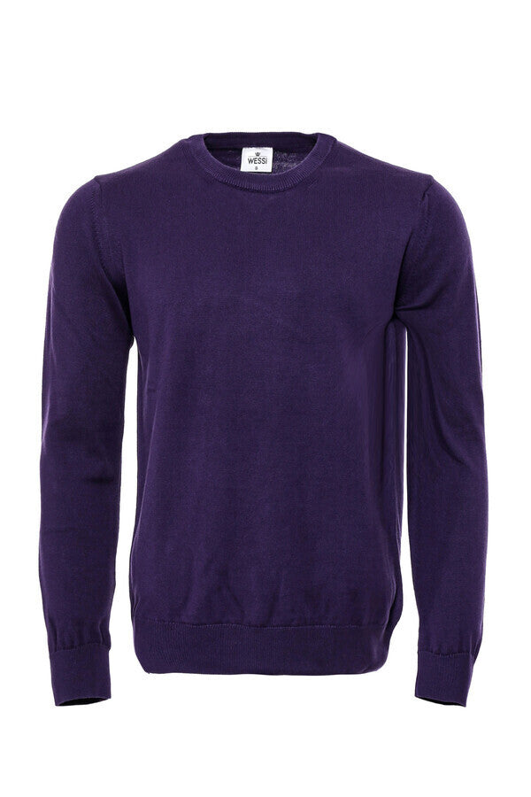 Crew Neck Long Sleeves Plain Purple Men Knitwear - Wessi