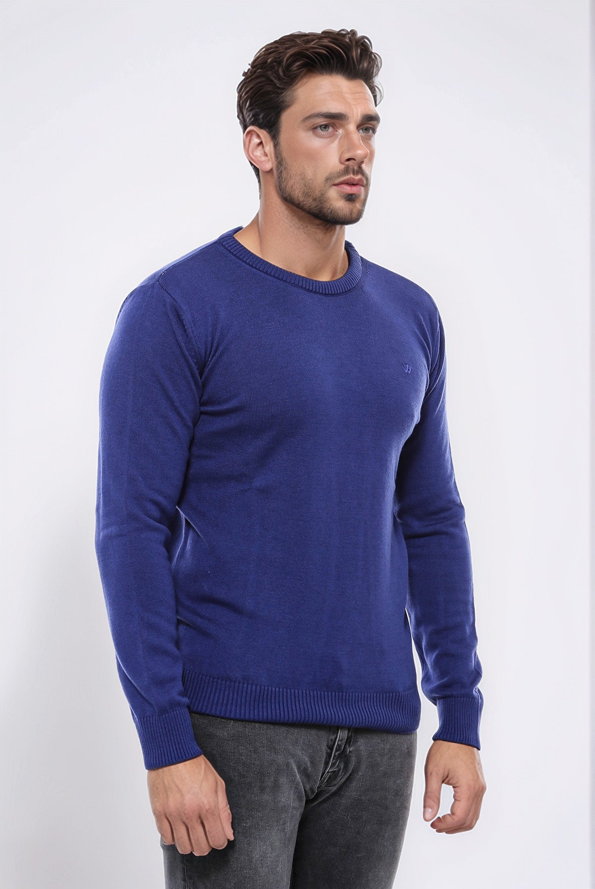 Navy Blue Crew Neck Embroidered Plain Knitwear - Wessi