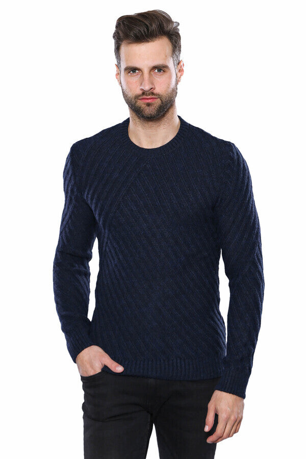 Navy blue is among the most modern color combinations in its recent years. This o-neck knitwear model with navy blue pattern will offer the harmony you are looking for with fabric or jeans. The model, which you can easily use in your autumn-winter concepts, can create perfect concepts with contrasting colors. You can complete your daily or business concepts with jeans, burgundy coat and dark blue shoes. The slim fit model fits your body perfectly. With its patterned design, it will create a good profile for those with low weight problems. You can find all the models you are looking for on a single address. You can complete your shopping enjoyable with quality product options at affordable price ranges and you can get the most stylish styles in every use by choosing the most compatible pieces for all your combinations.