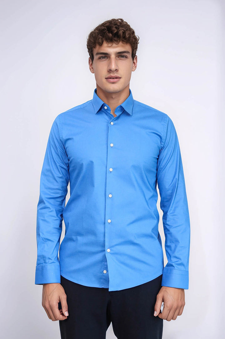 Our men's shirt model, which will be the saviors of men, is our blue patterned plain pattern shirt model. Undoubtedly, one of the saving pieces that every man should have in his closet is blue shirts. This blue shirt in slim fit style is one of the models that will easily make you look stylish without spending time in difficult times. You should get one of this model, which can be easily and stylishly combined with many parts.