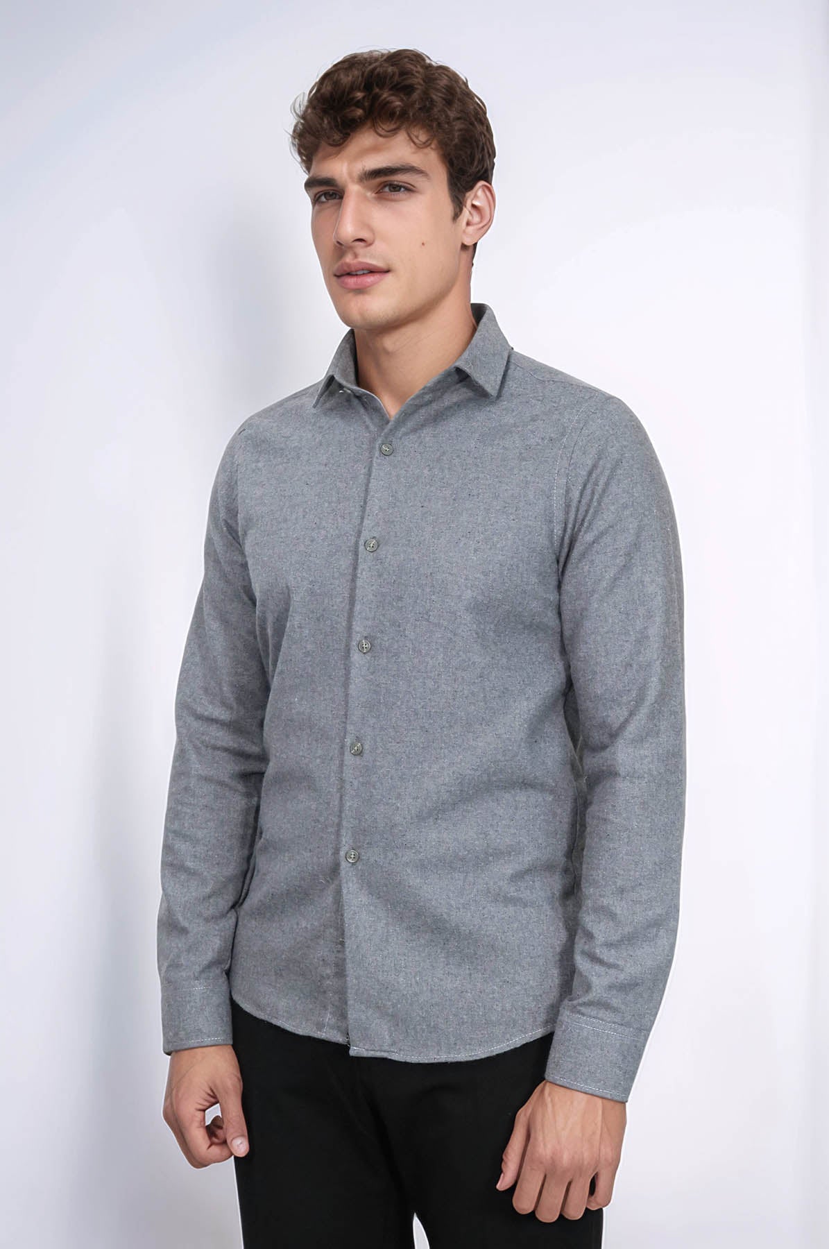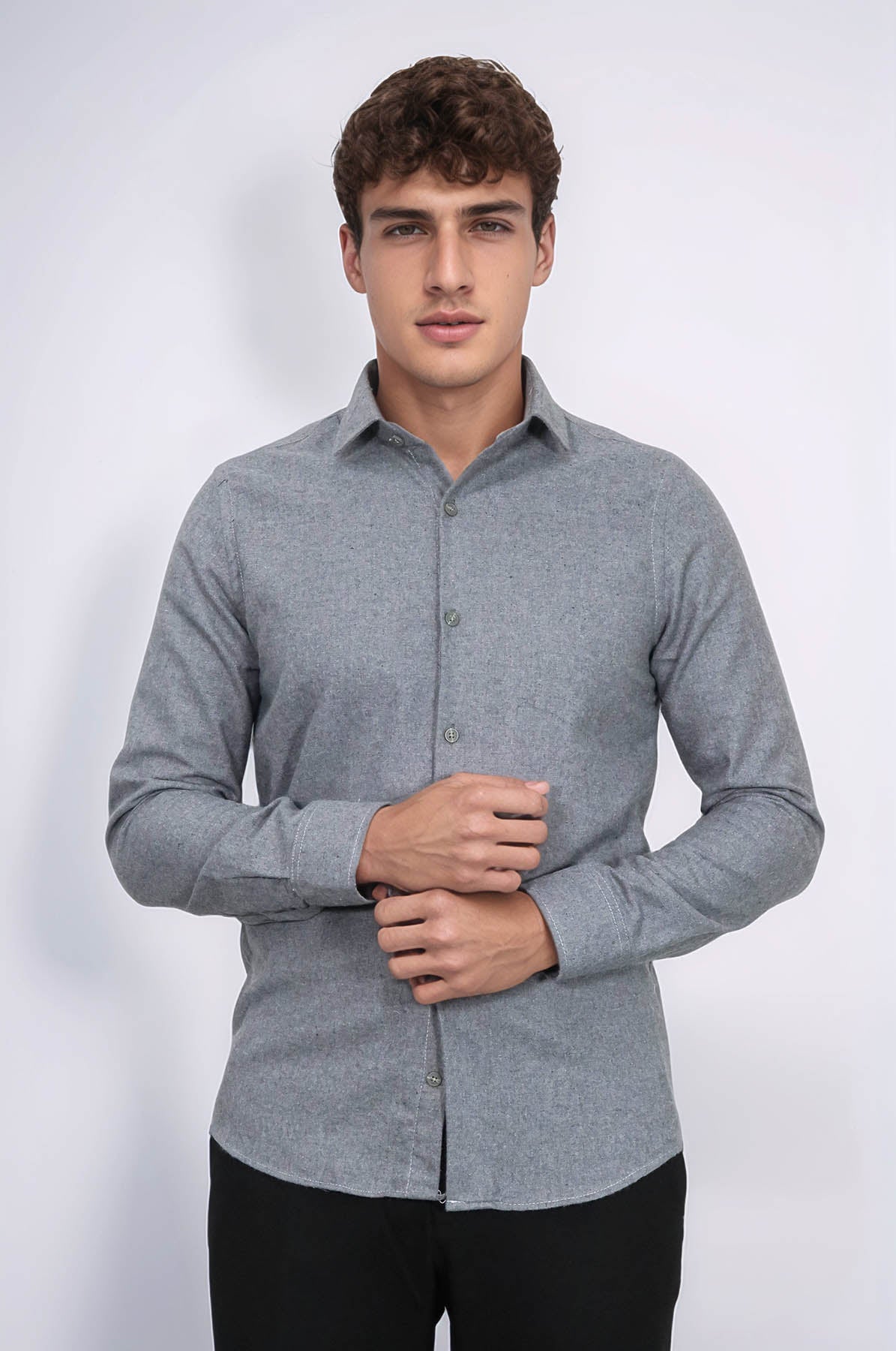 Plain Slim Fit Grey Men Lumberjack Men Shirt - Wessi