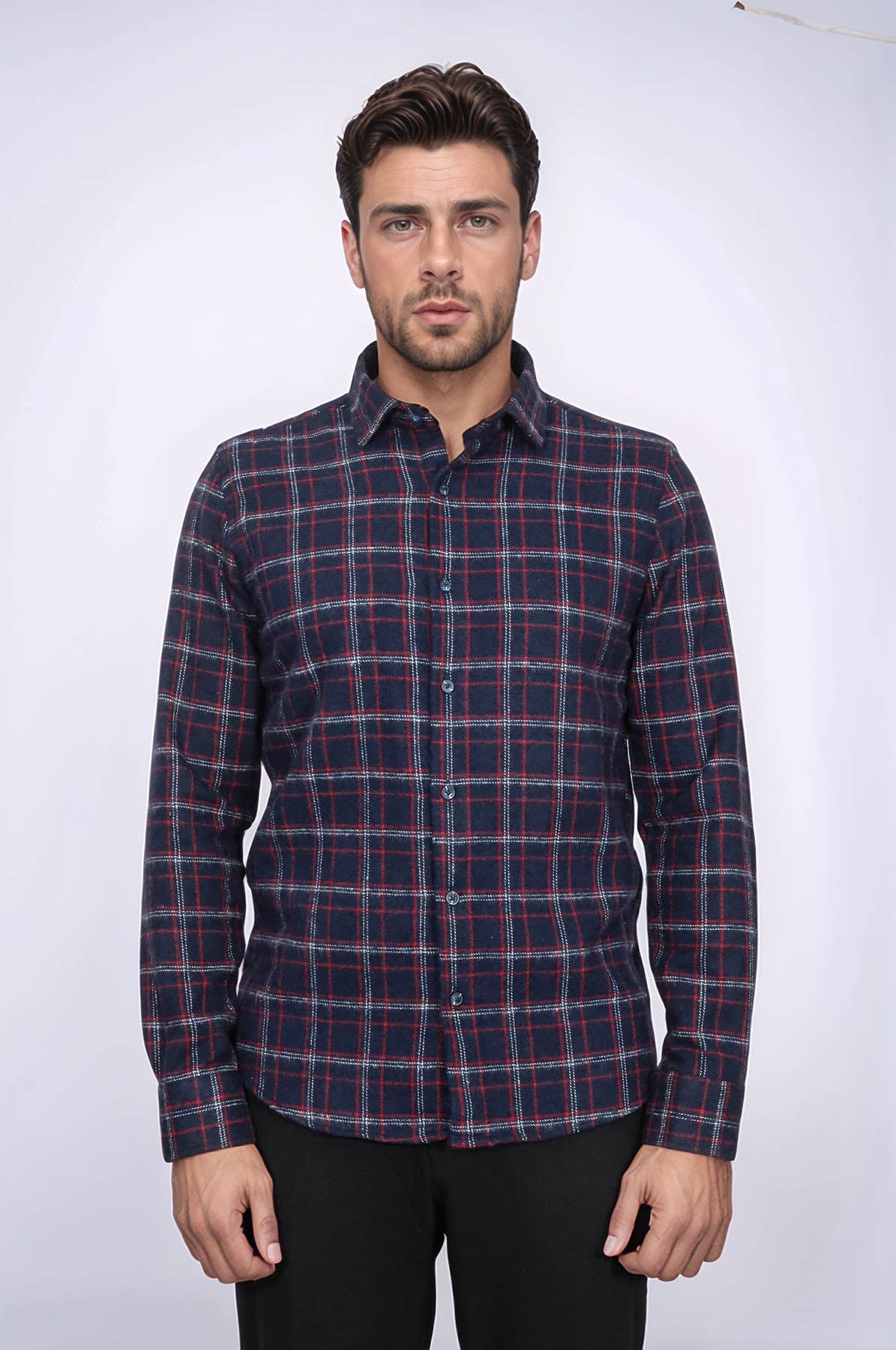 Thick Patterned Navy Blue Men Lumberjack Shirt - Wessi