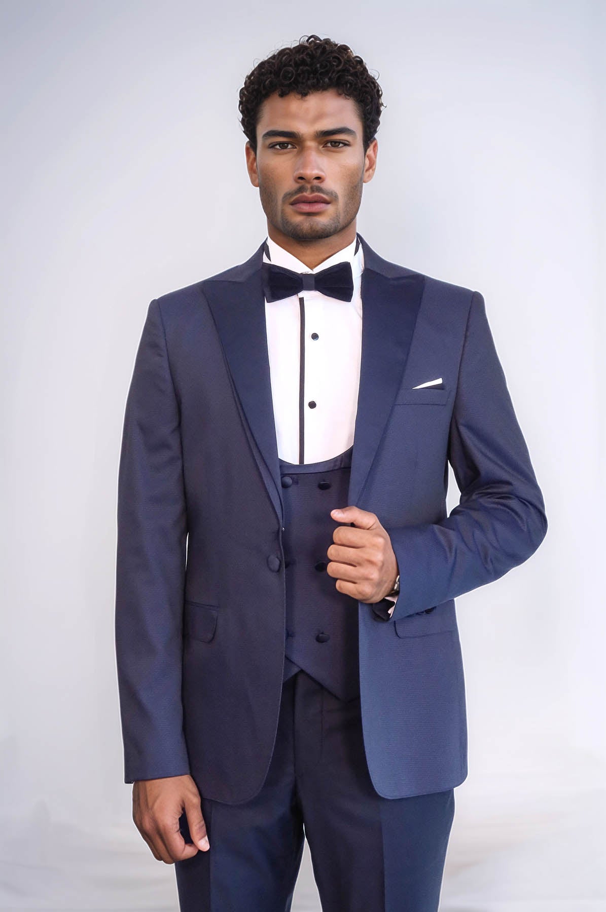 Q: Why should retailers add this navy tuxedo to their wholesale collection?