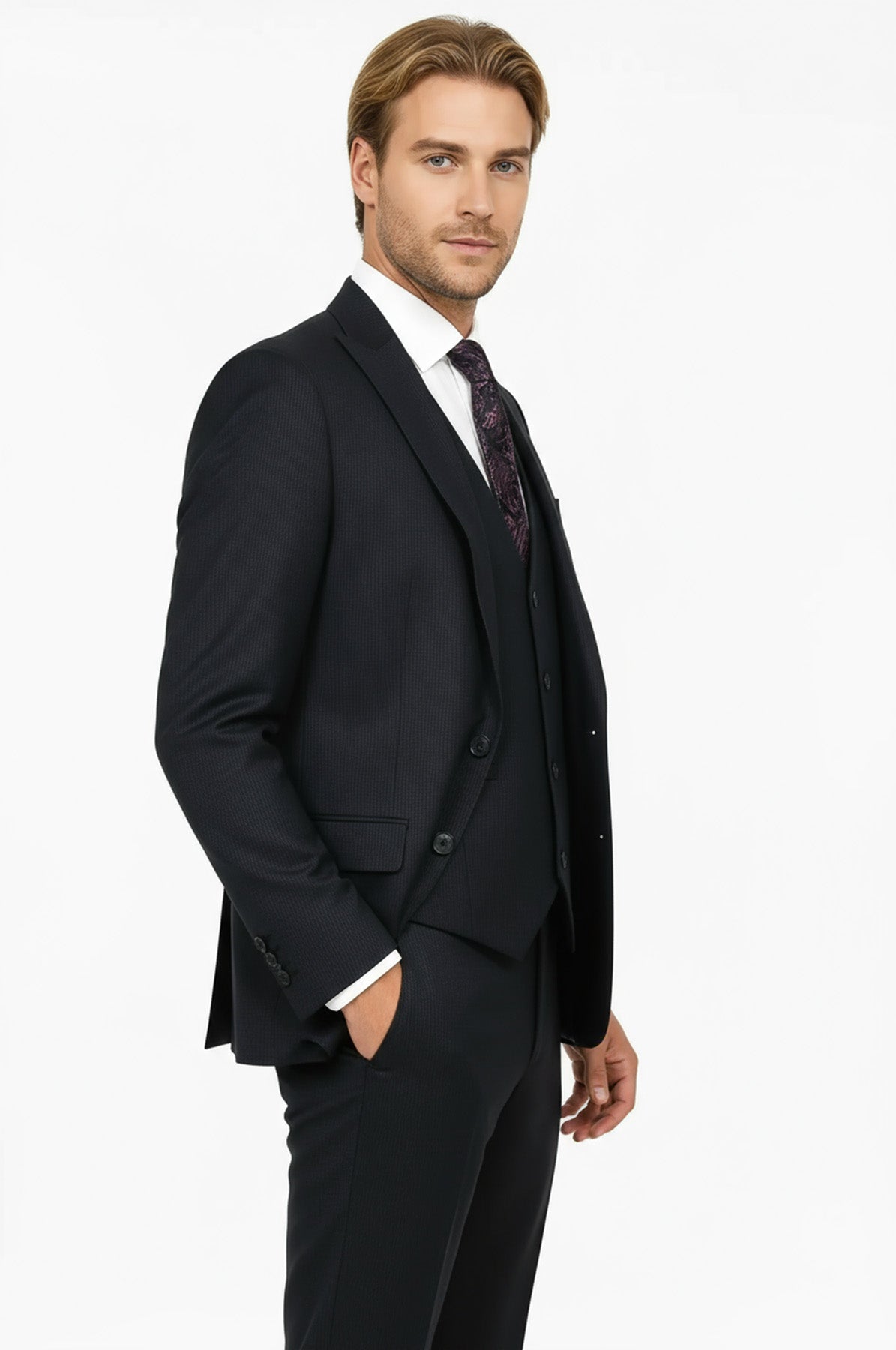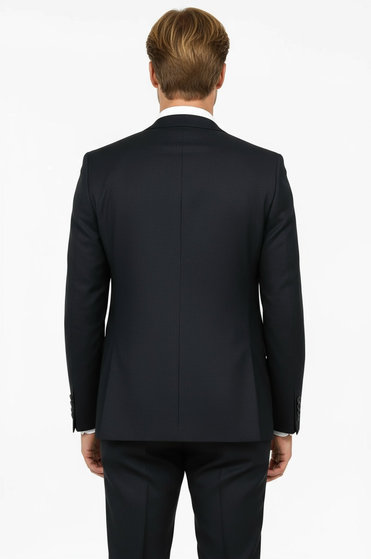 Slim Fit Patterned Navy Blue Men Suit - Wessi