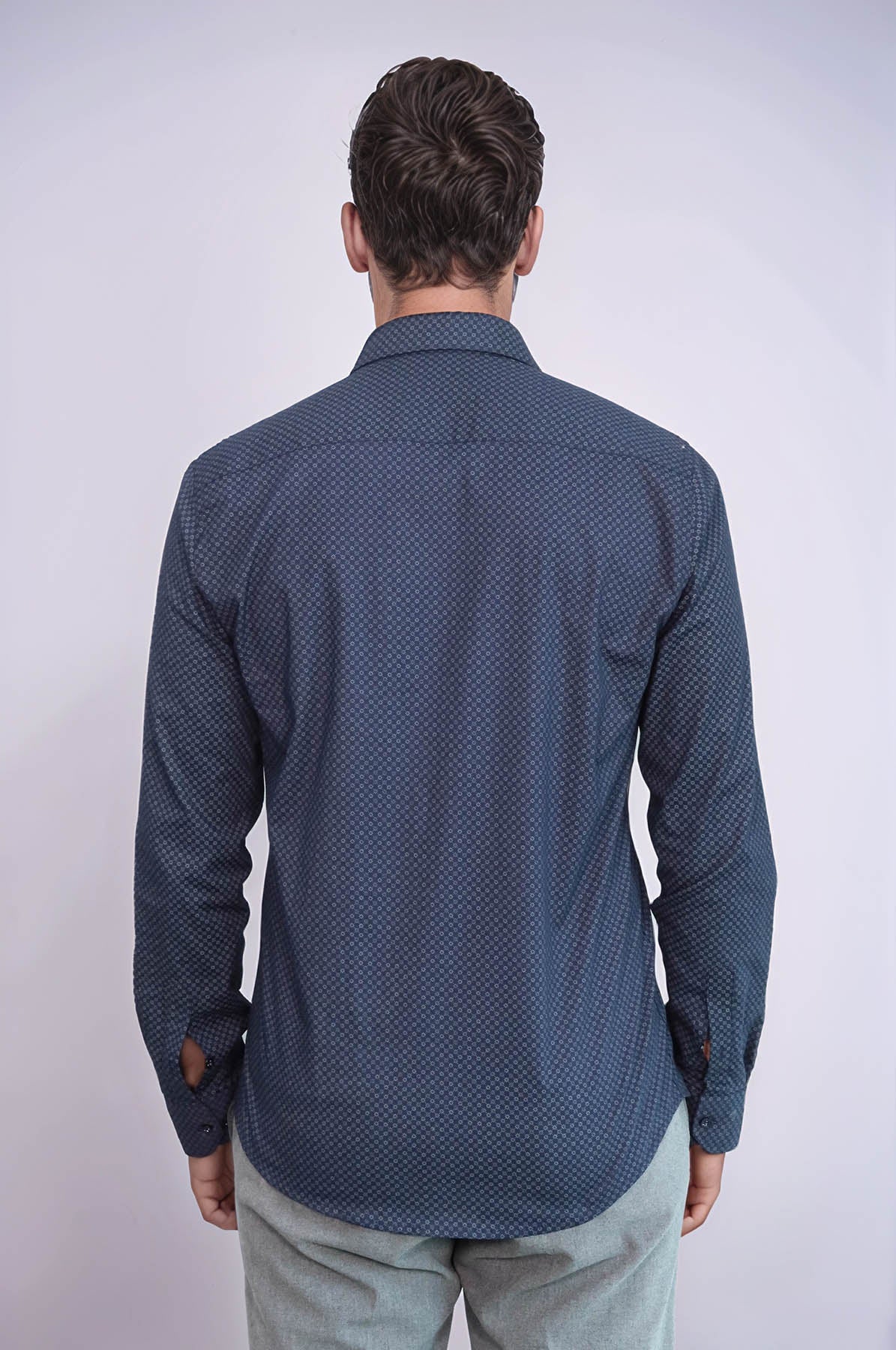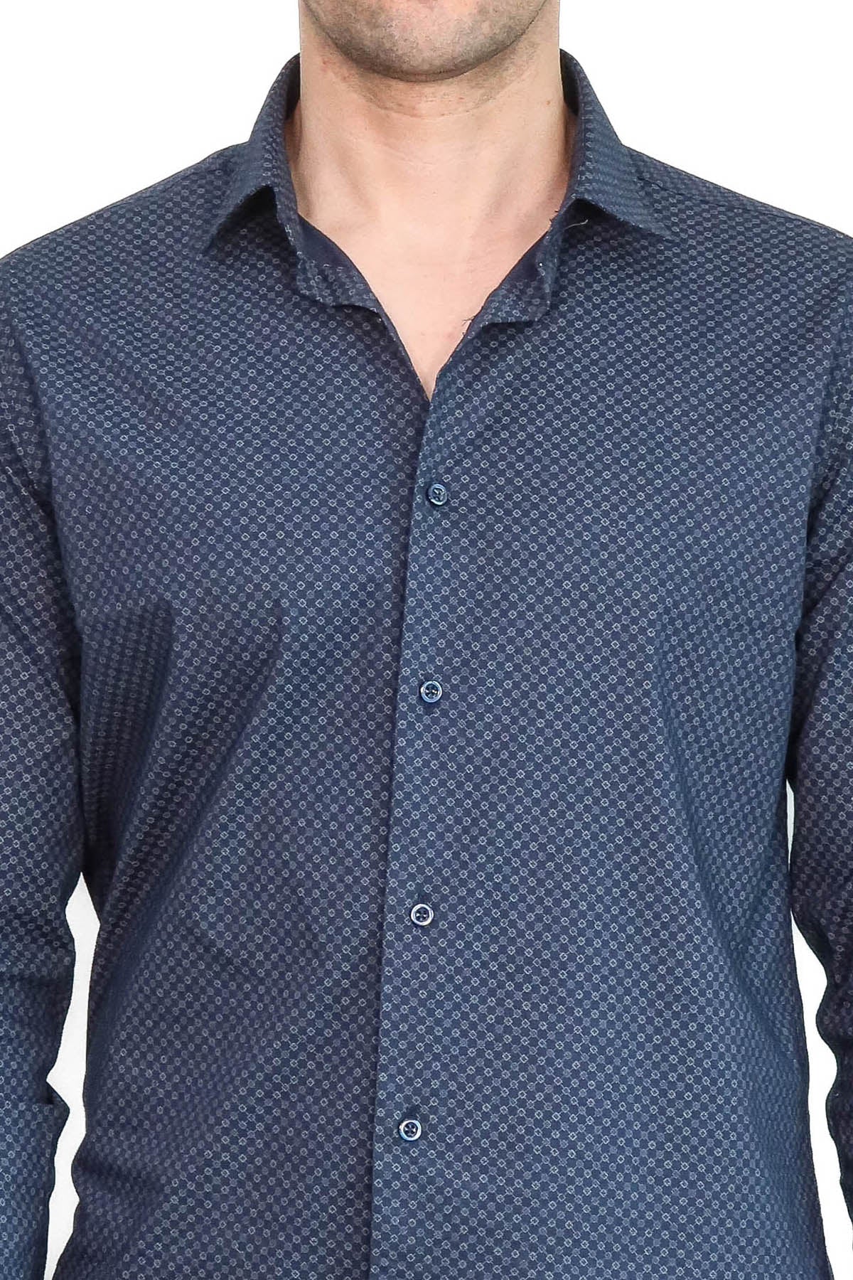 Dark Blue Tiny Check Patterned Slim Fit Shirt - Wessi