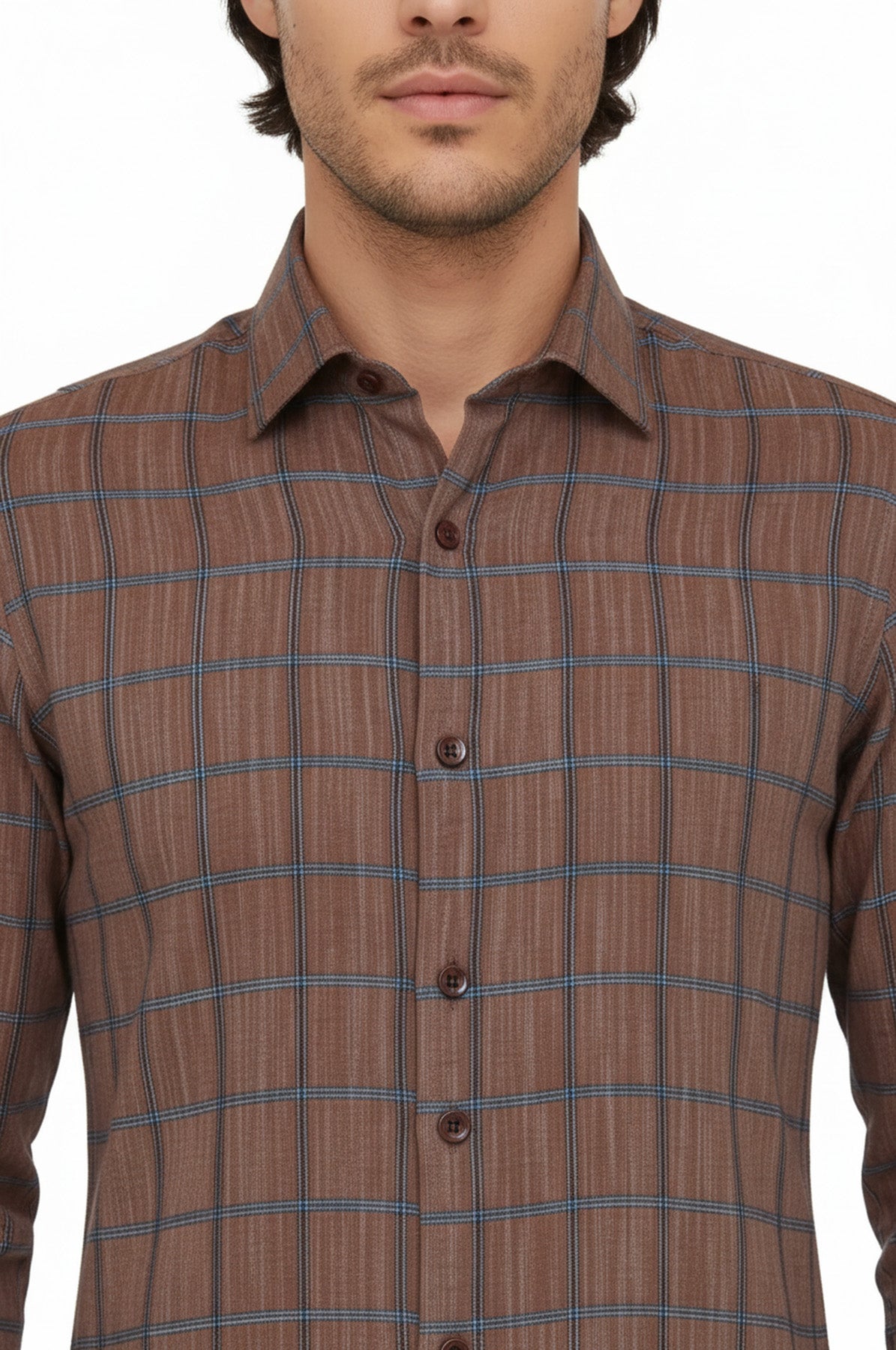 Plaid Slim Fit Brown Men Shirt - Wessi