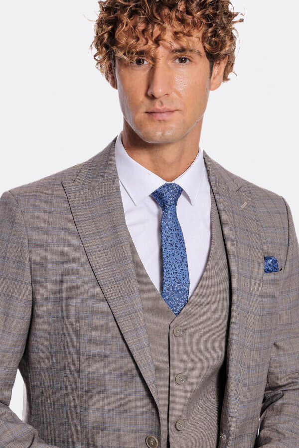 Checked Slim Fit Light Brown Men Suit - Wessi