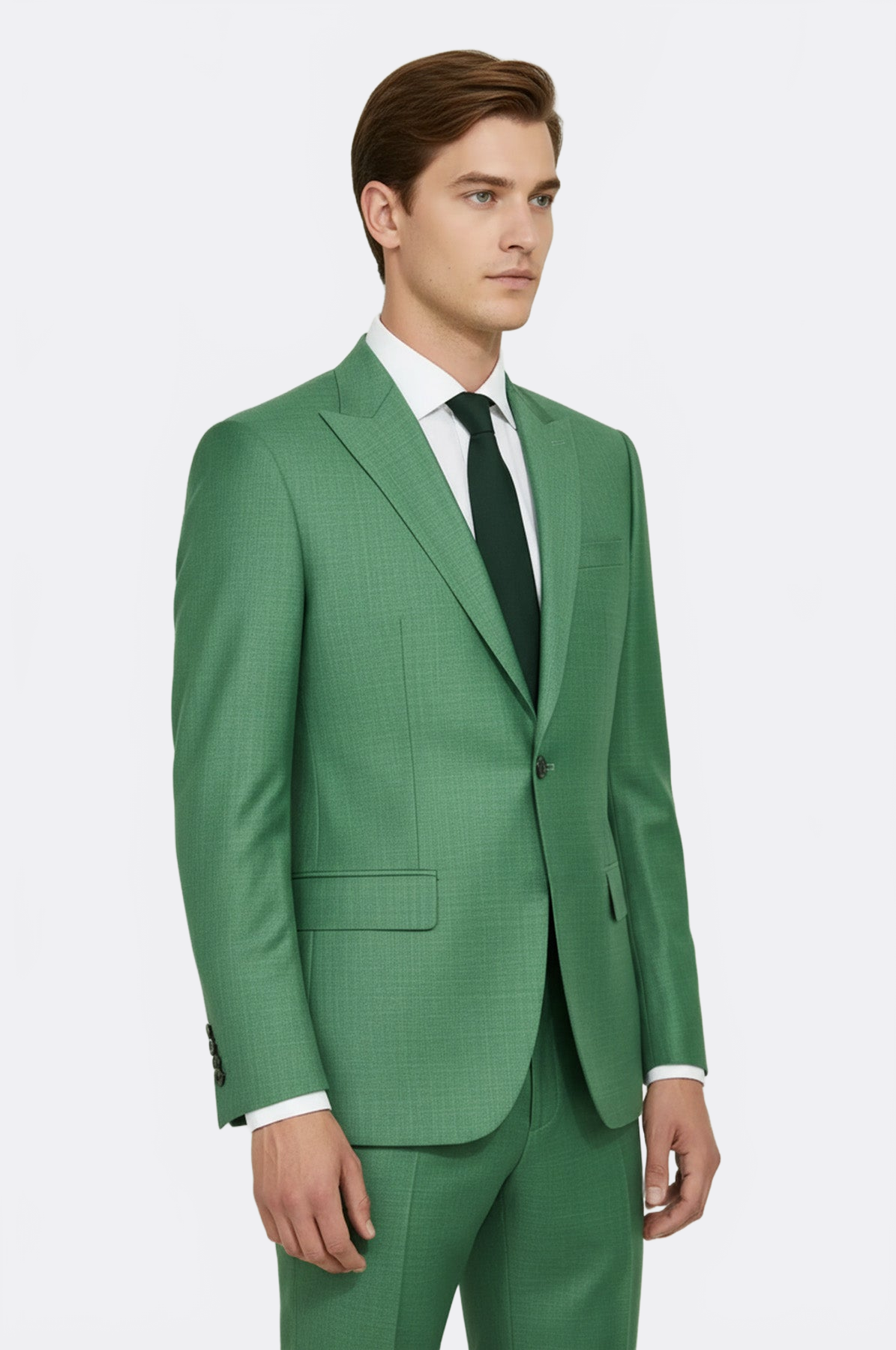 Two Piece Slim Fit Single Button Green Men Suit - Wessi