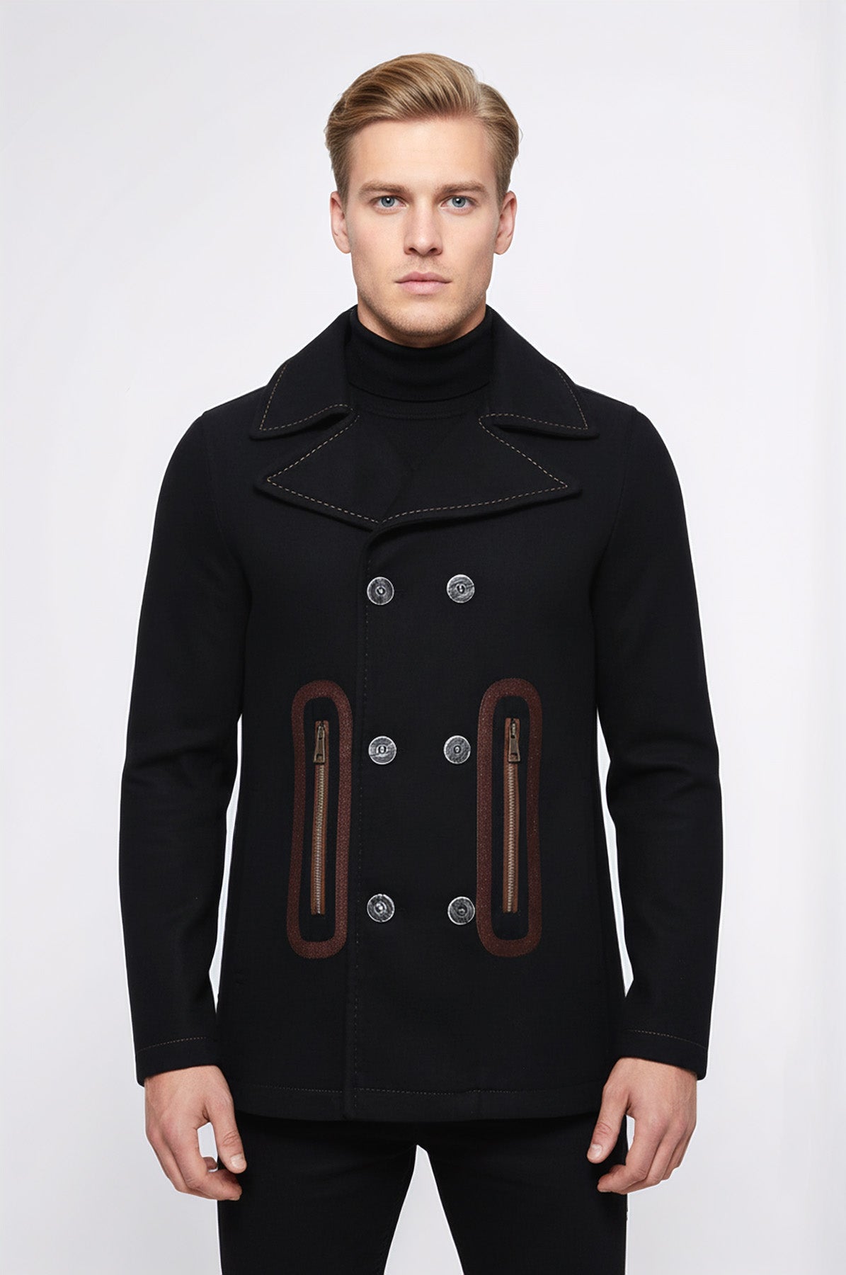 Introducing the Pocket Edge Embroidered 6 Buttons Brown Coat by Wessi. This coat features unique pocket edge embroidery and six buttons for a stylish and sophisticated look. Crafted with expert precision, this coat is the perfect addition to any wardrobe. Stay warm and fashionable this season.