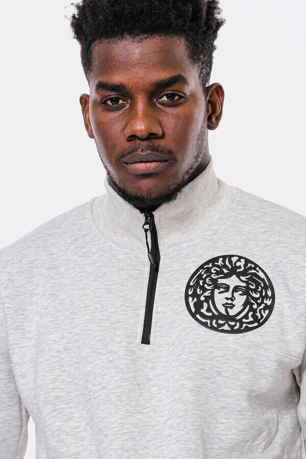 Mandarin Collar Patterned Grey Sweatshirt - Wessi