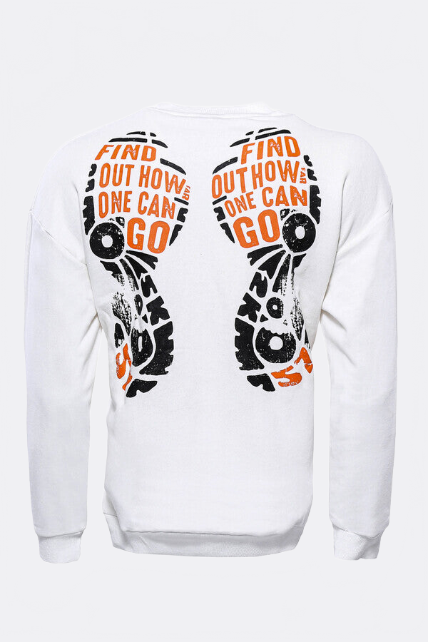 Crew neck mens sweatshirt, designed with both side printed fabric in white.