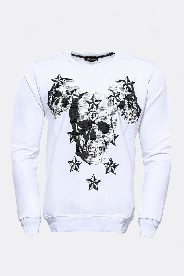 Circle neck men's sweatshirt, designed with printed fabric in white.