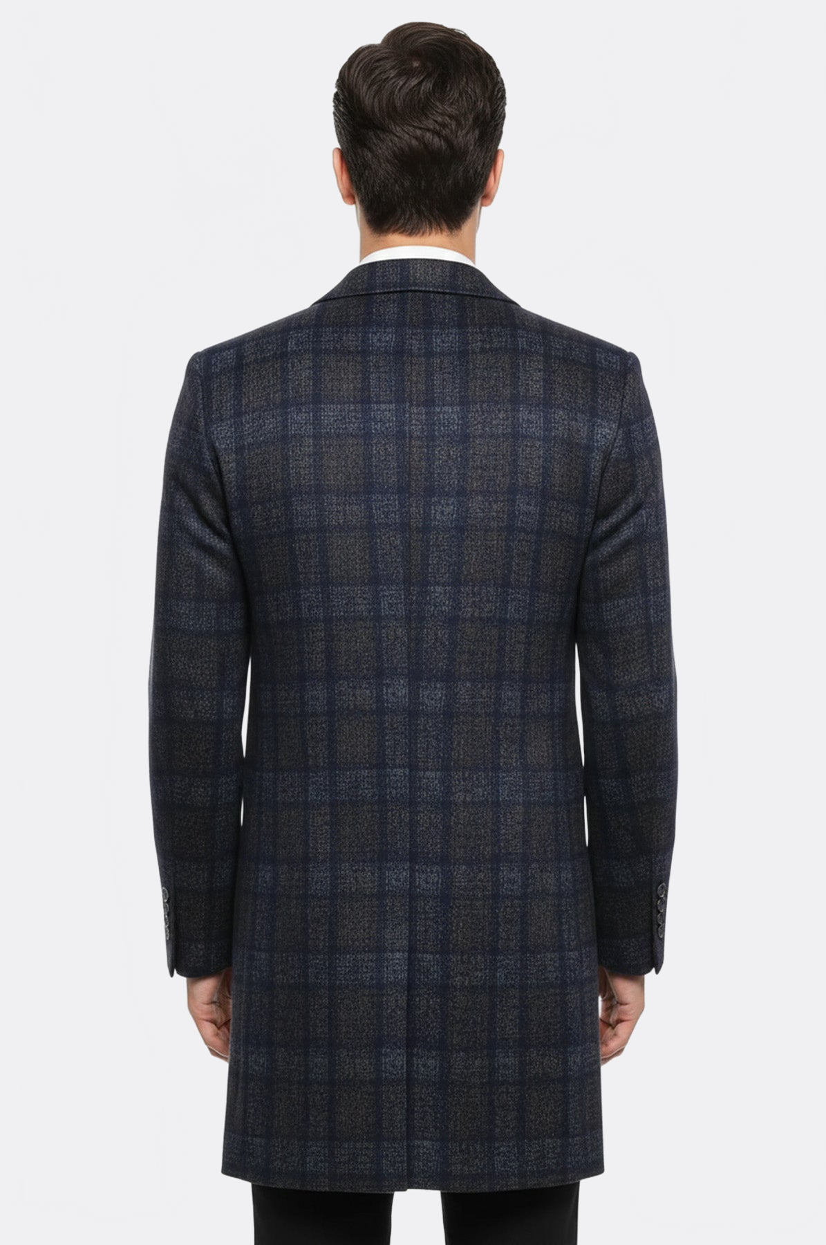 It is possible to find overcoat models, which are among the most popular men's classic clothing pieces, in the products of our brand. In this model, in which smoked color is used, a large plaid pattern is created using dark blue lines. The coat, designed with three buttons, also has pointed wide collars. In order to add color and revitalization to the model, a collar pocket was designed, allowing men to use pocket wipes.