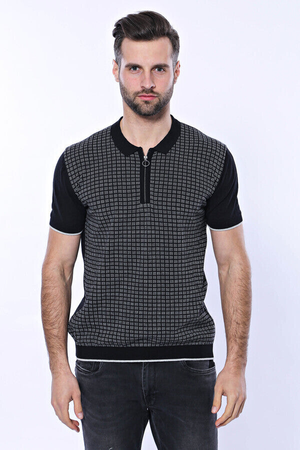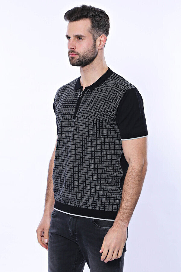 Camiseta polo de punto con cremallera y cuadros negros | Wessi