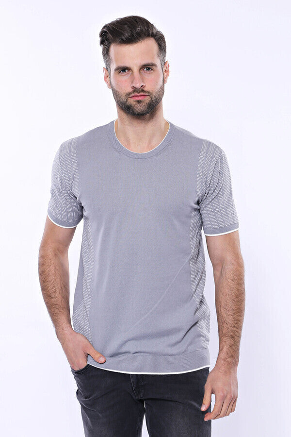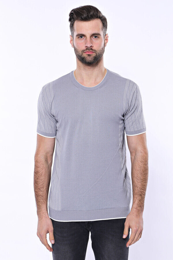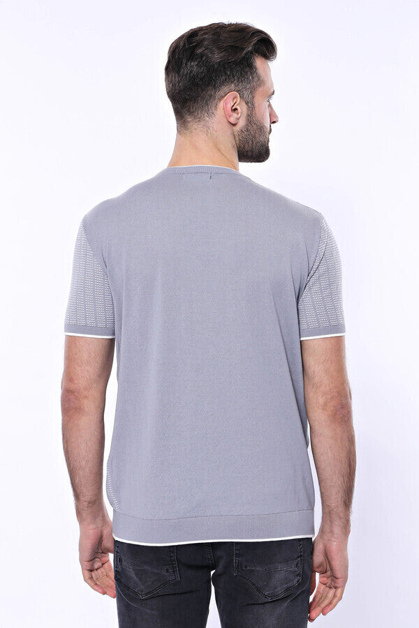 Incluso aquellos que prefieren un estilo corporativo y clásico en cada outfit dan más prioridad a la comodidad en sus combinaciones casuales. Este modelo de camiseta con bordes grises se encuentra entre las opciones más cómodas que se pueden usar para los períodos de primavera y verano. El tejido de punto proporciona un aire más drapeado incluso en diferentes tallas de cuerpo. El modelo, que tiene elásticos en la manga, el cuello y la cintura, abre la puerta a conceptos de colores claros para conceptos de verano con sus detalles en blanco. Puedes conseguir un conjunto de verano completo con tus pantalones blancos, crudos y crema y tus zapatillas deportivas blancas. Puedes comprar en nuestro sitio tus combinaciones más elegantes cada temporada. Puedes comprar productos con las ventajas de calidad y precio razonables de Wessi, y puedes renovar tus combinaciones con las opciones de productos más de moda cada temporada.