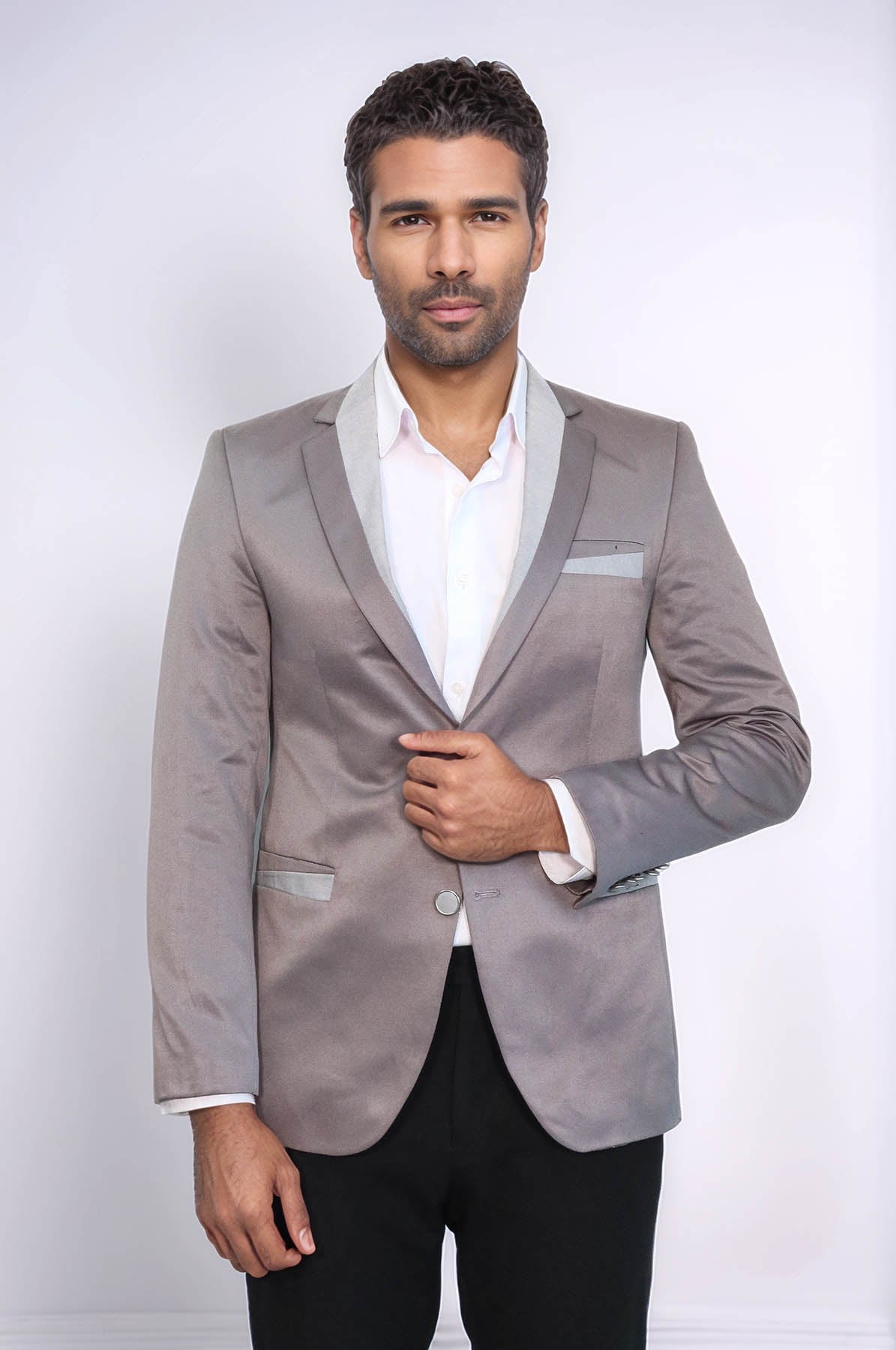 Chaqueta gris con 3 bolsillos y 2 botones con ribete cruzado - Wessi