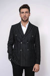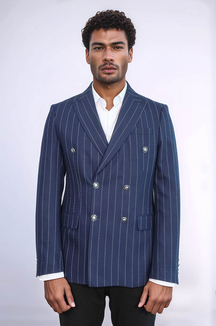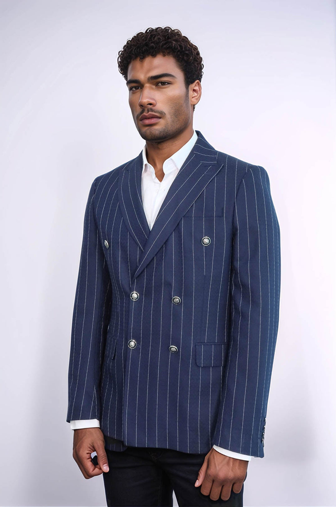 Blazer azul marino de rayas de corte entallado y cruzado para hombre - Wessi