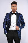 Blazer de fiesta para hombre azul marino con solapa de pico y estampado floral - Wessi