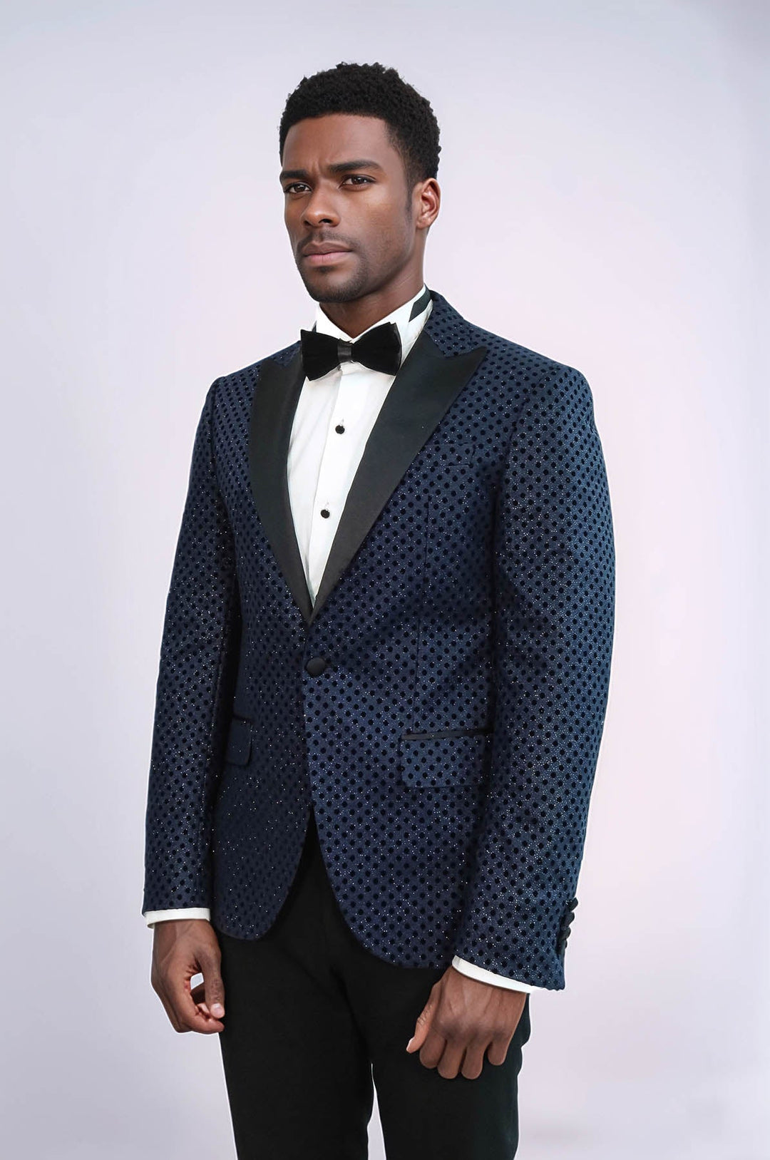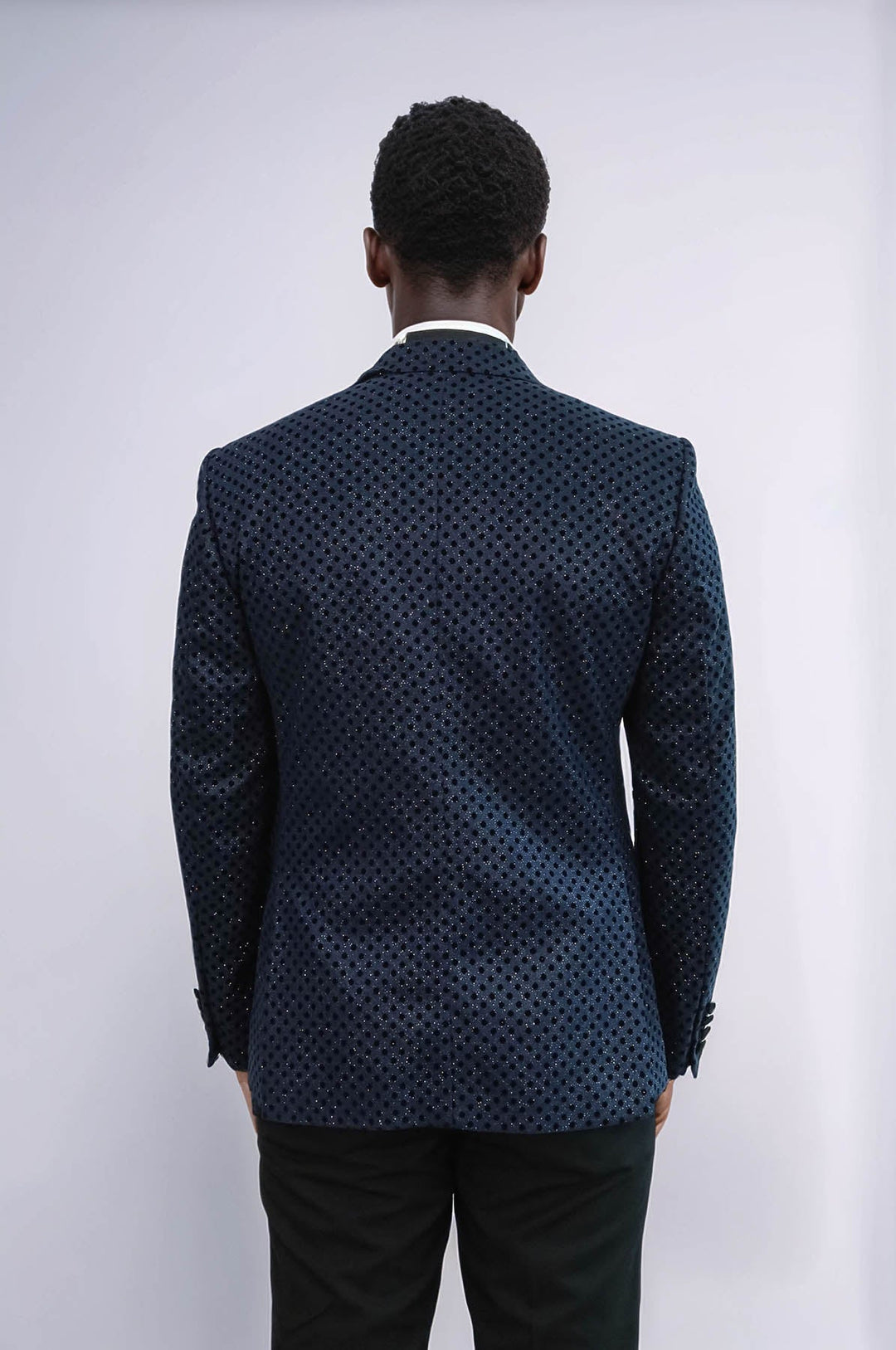 Blazer de fiesta para hombre azul marino con estampado de lunares y lentejuelas - Wessi