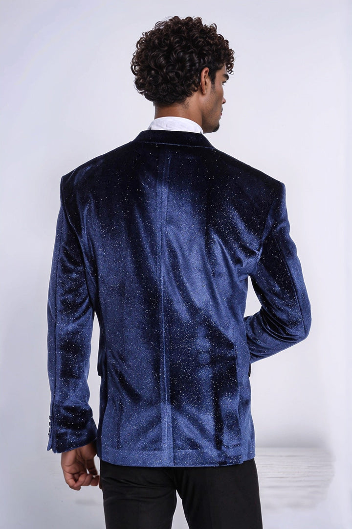 Blazer de fiesta para hombre de terciopelo azul marino ajustado y brillante - Wessi